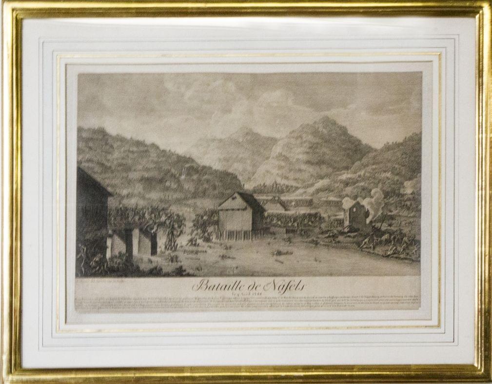 Bataille de Nassels, gravure, XVIIIe s, 36x49 cm
