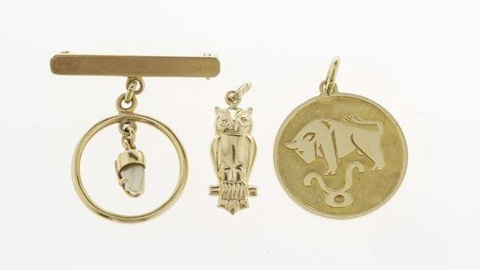 Or 750, poids brut 10 g. On joint un pendentif en or 750 serti d...