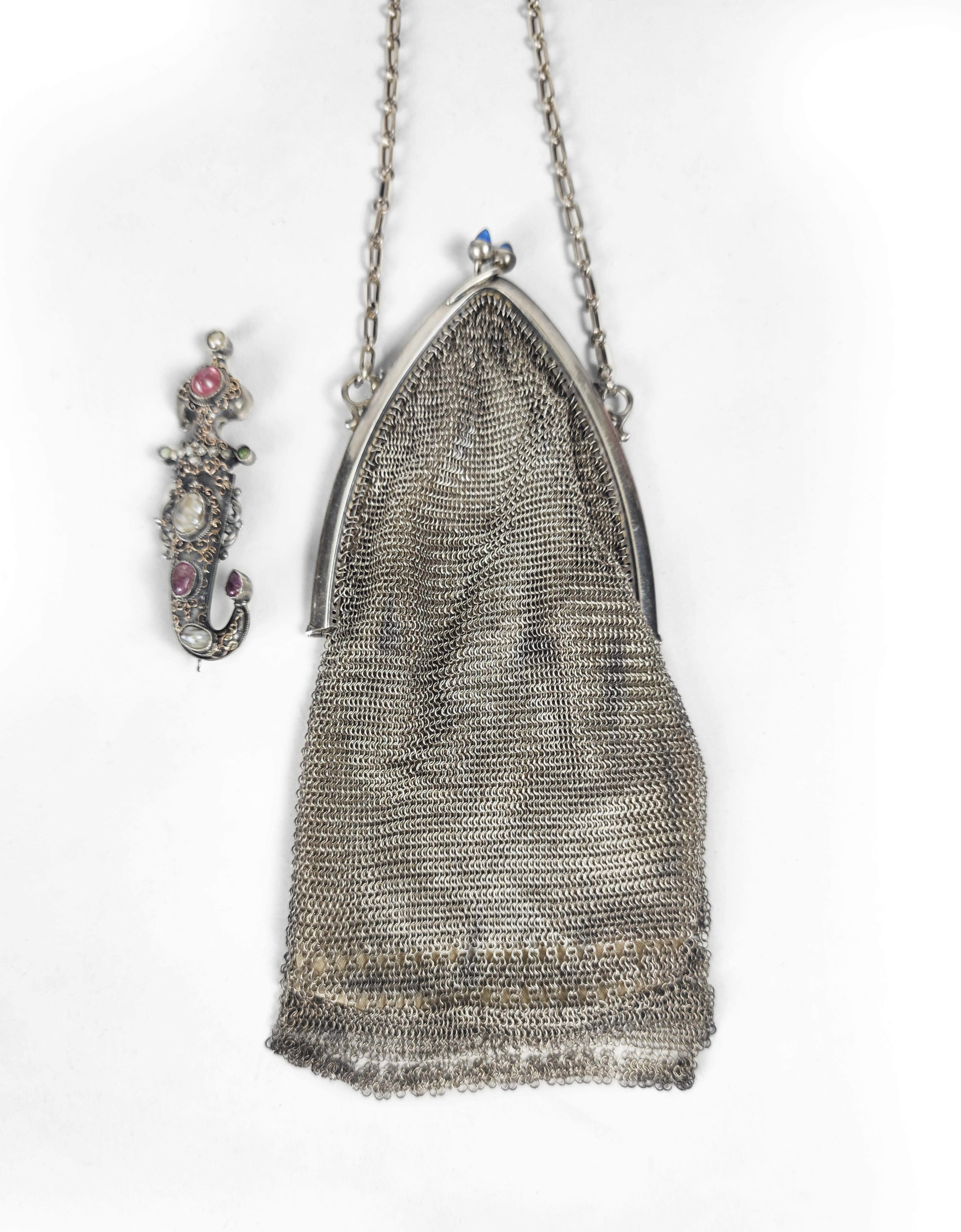 20. Collier à maille plate terminé par un motif serti de saphirs