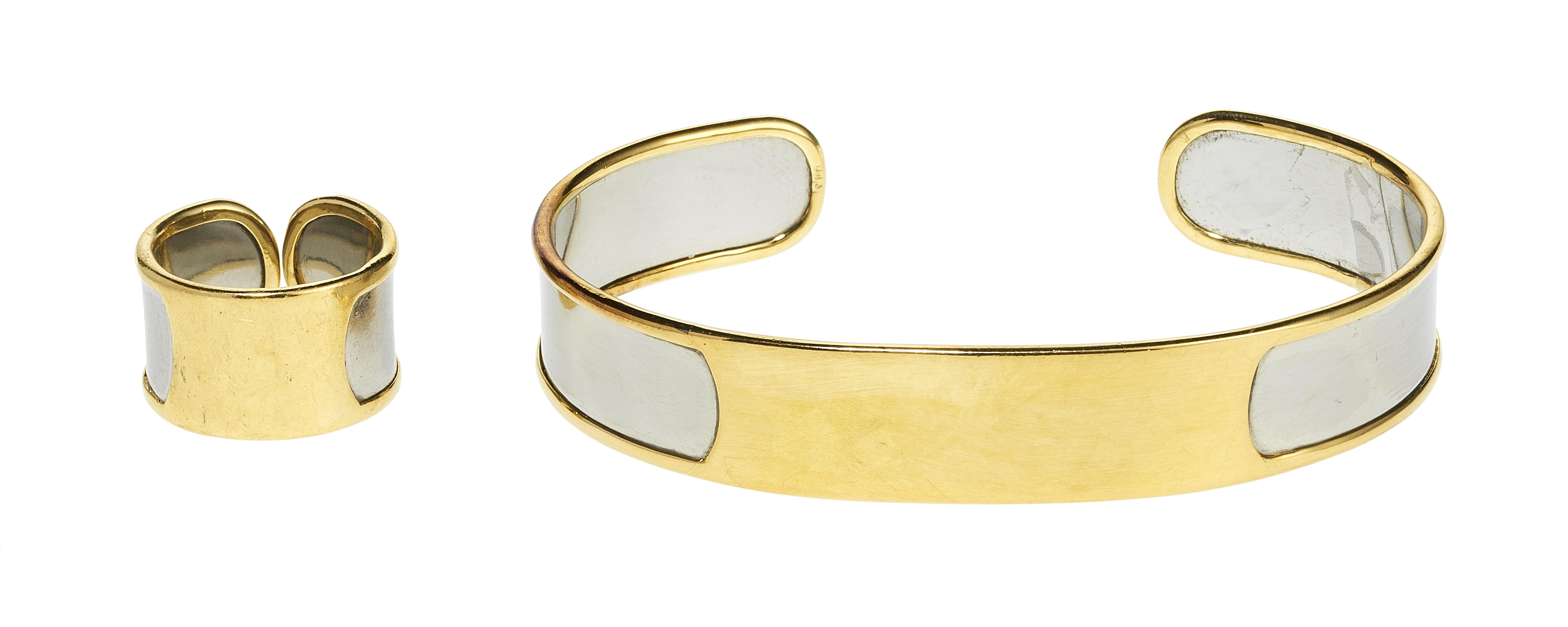 3076. Lot d'une bague et d'un bracelet jonc ouverts