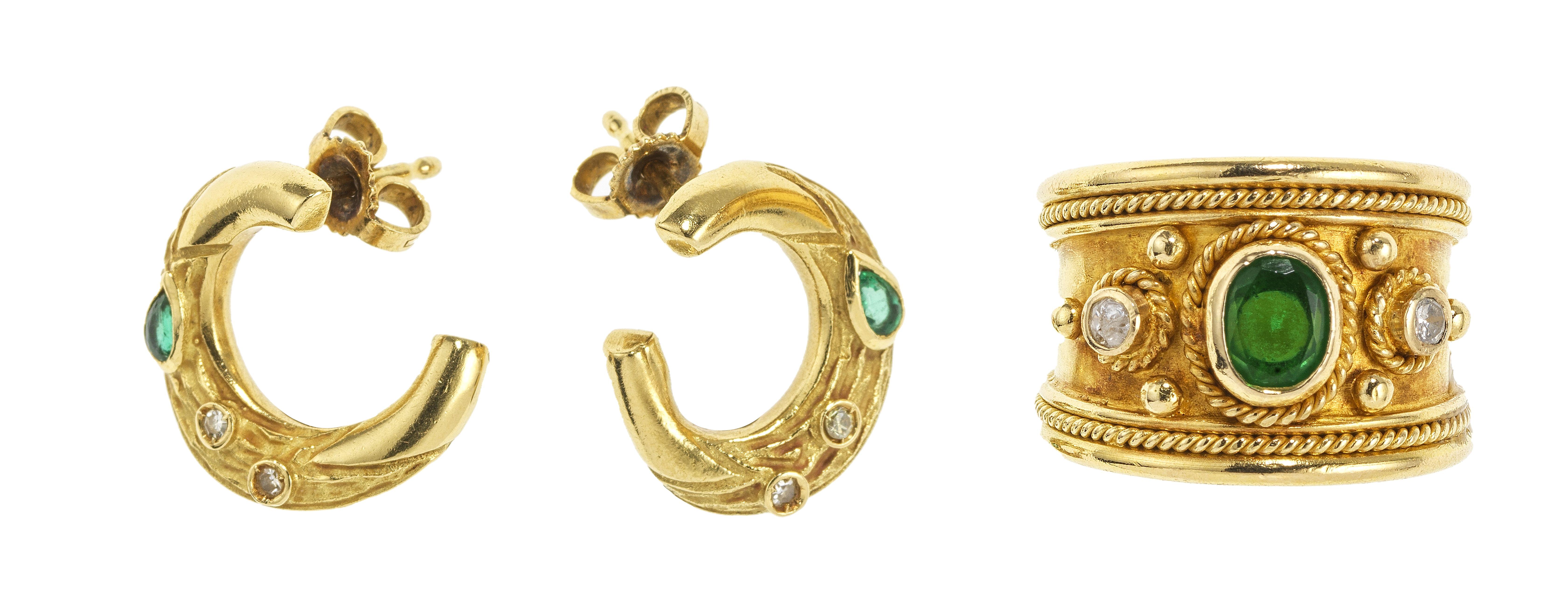 30. *Pendants d'oreilles sertis d'émeraudes taille ovale (total env....