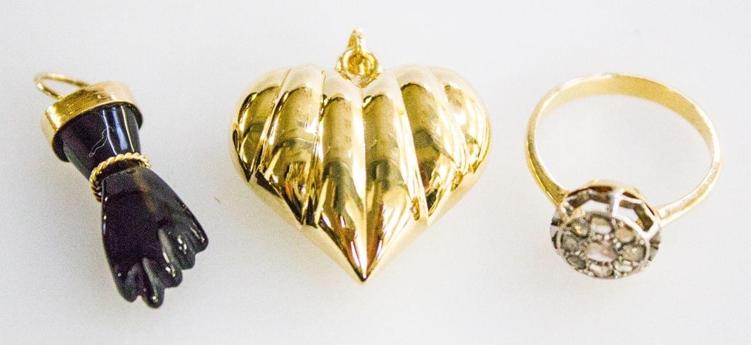 3039. Lot de 1 pendentif en forme de coeur et d'une bague sertie de diamants