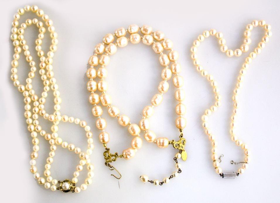 56. Bracelet de perles multi-rangs, fermoir serti d'une boule d'amaz...