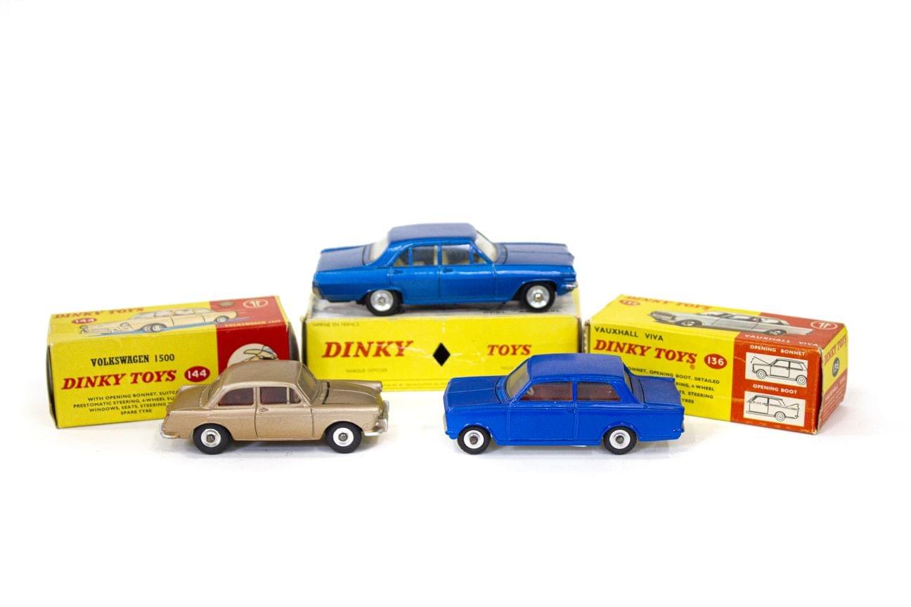 Une Vauxhall Viva (136), une Opel Admiral (513) et une Volkswagen 1500 (144), avec leur boîte.