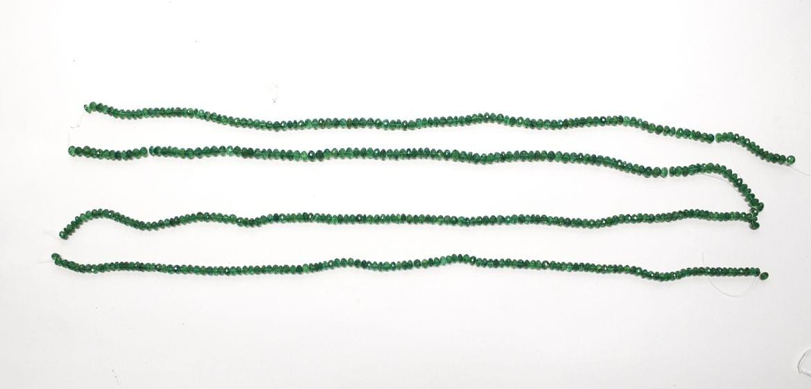 3167. Lot de 4 fils d'émeraudes facettées, env 65 g