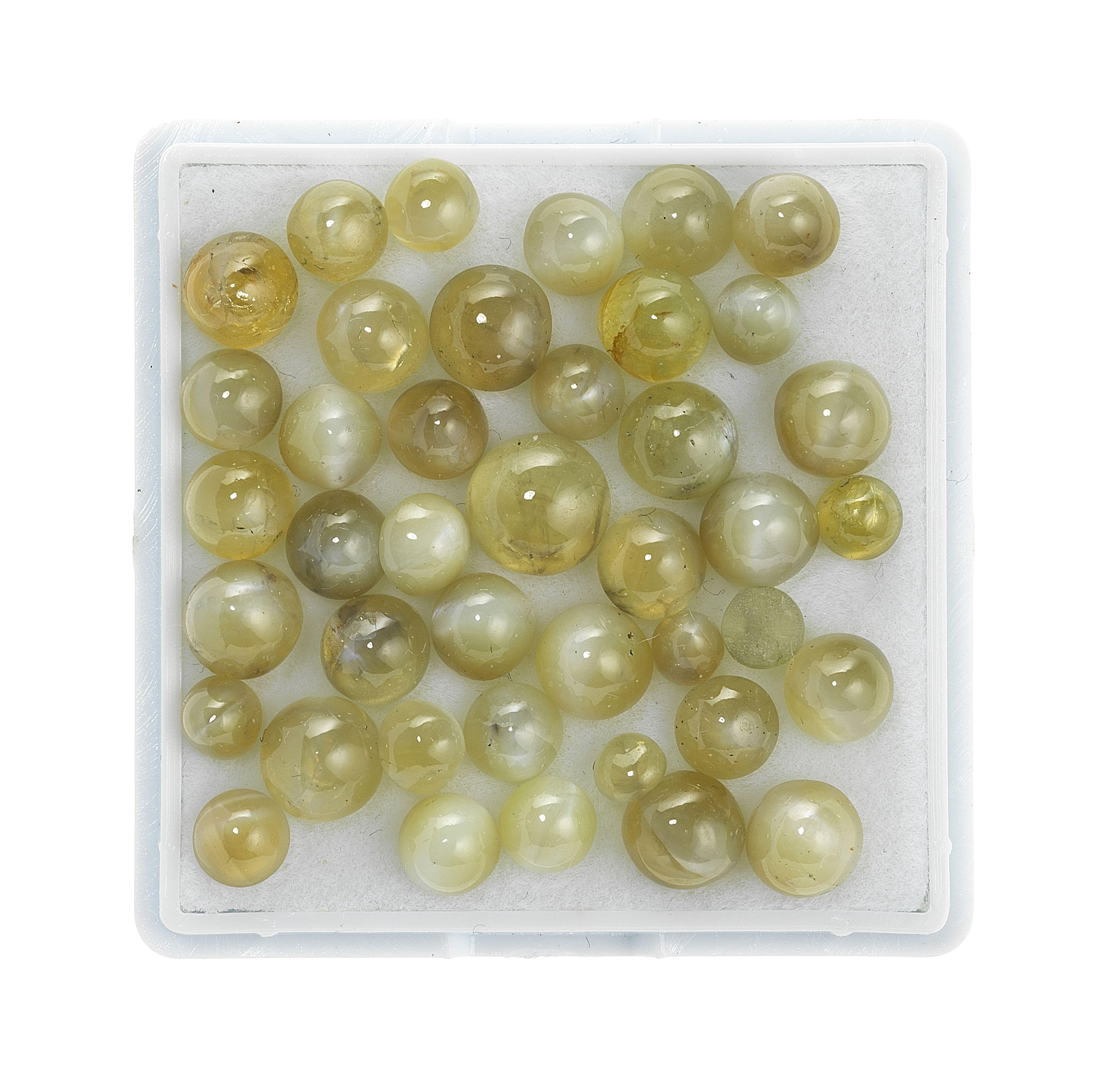 3654. Lot de chrysobéryls taille cabochon ronde sur papier