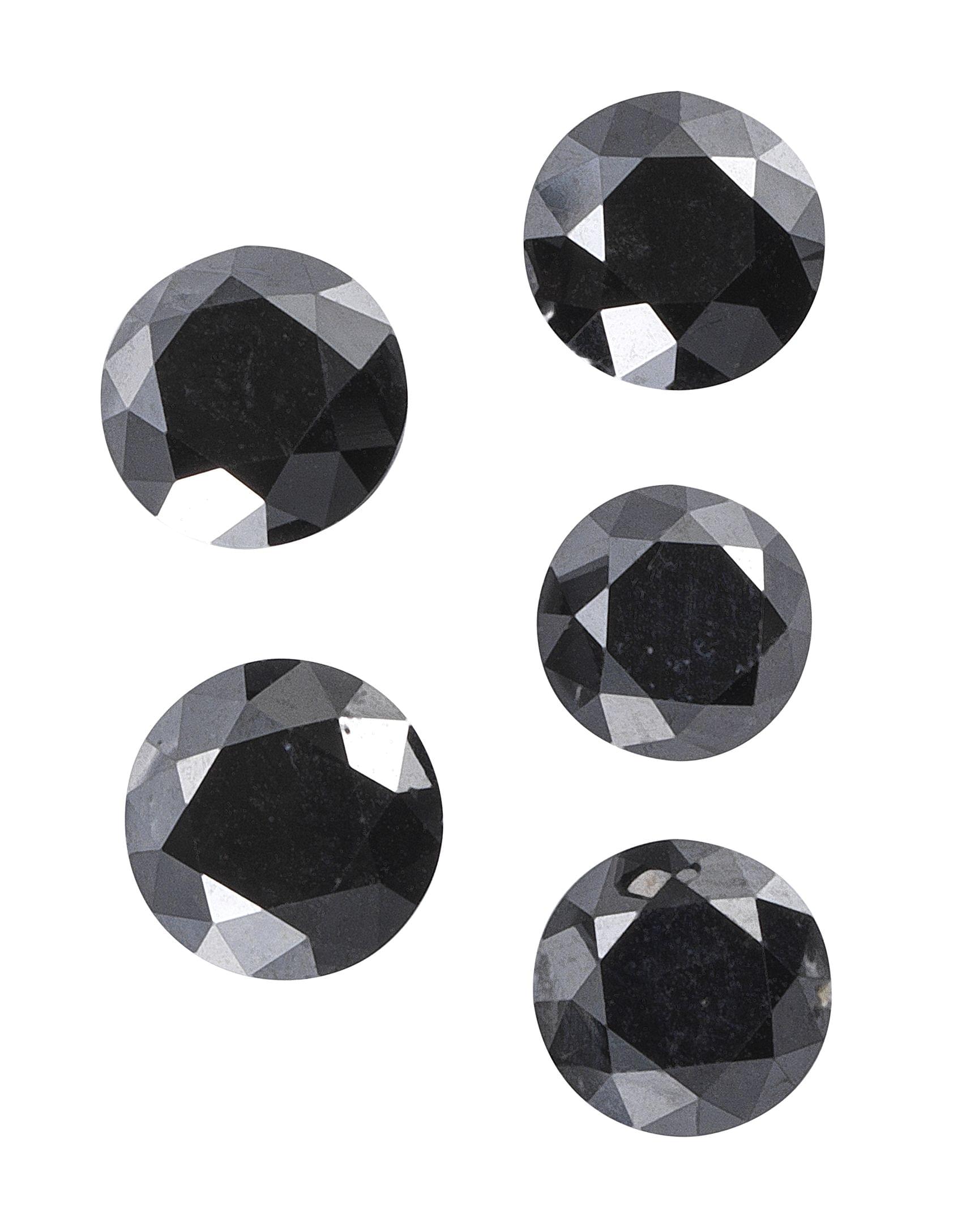 3553. *Lot de cinq diamants noirs taille brillant sur papier