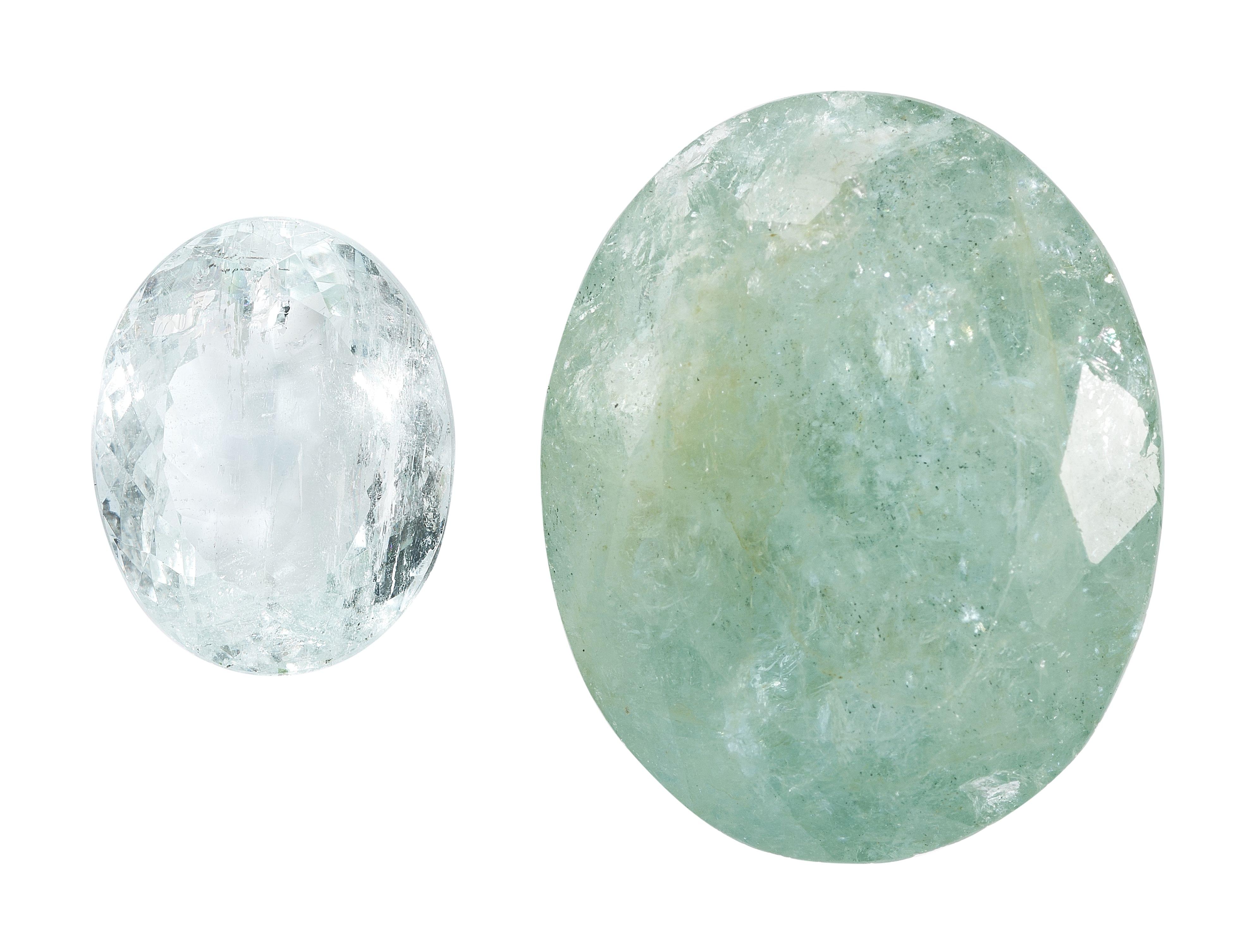3448. *Lot de deux aigues-marines taille ovale sur papier