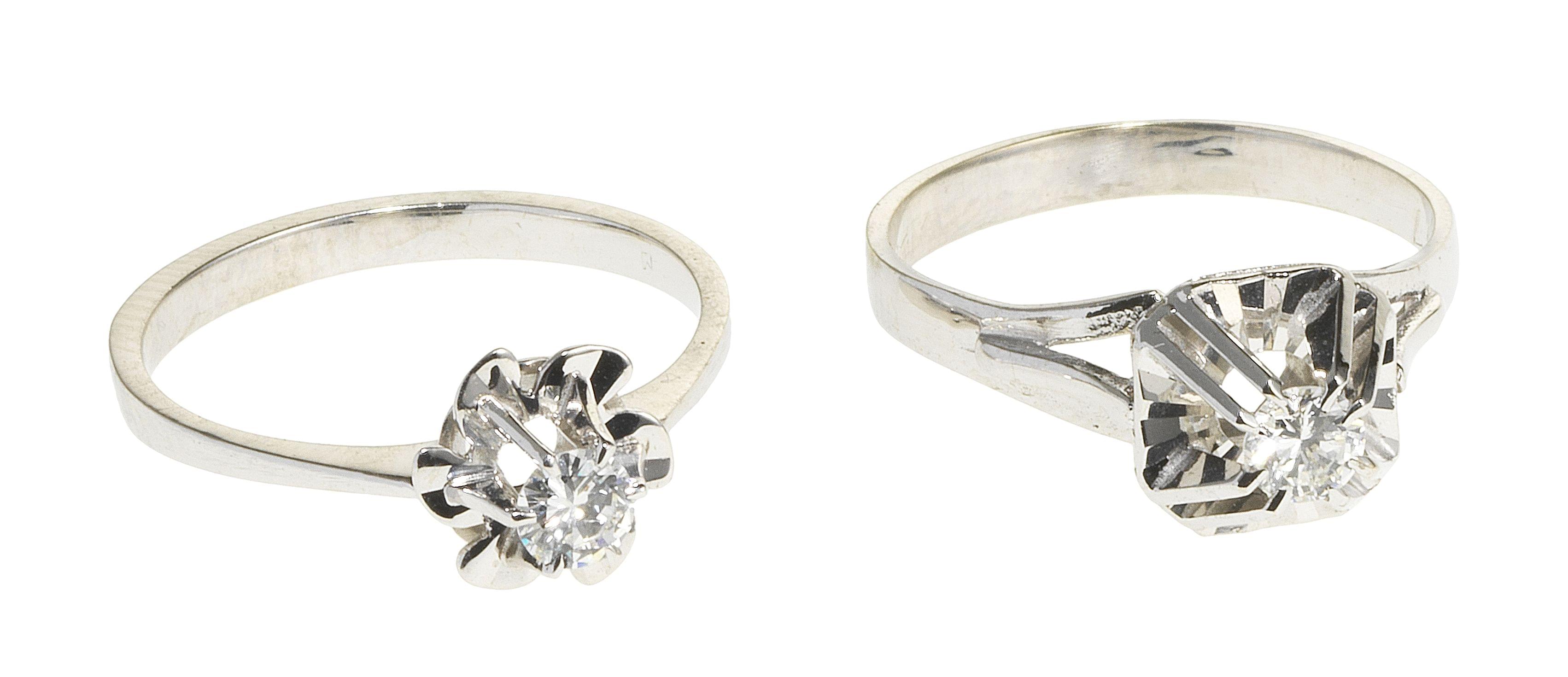 3203. Lot de deux bagues à chaton illusion serties de diamants en solitaire (env. 0,15 ct par diamant)