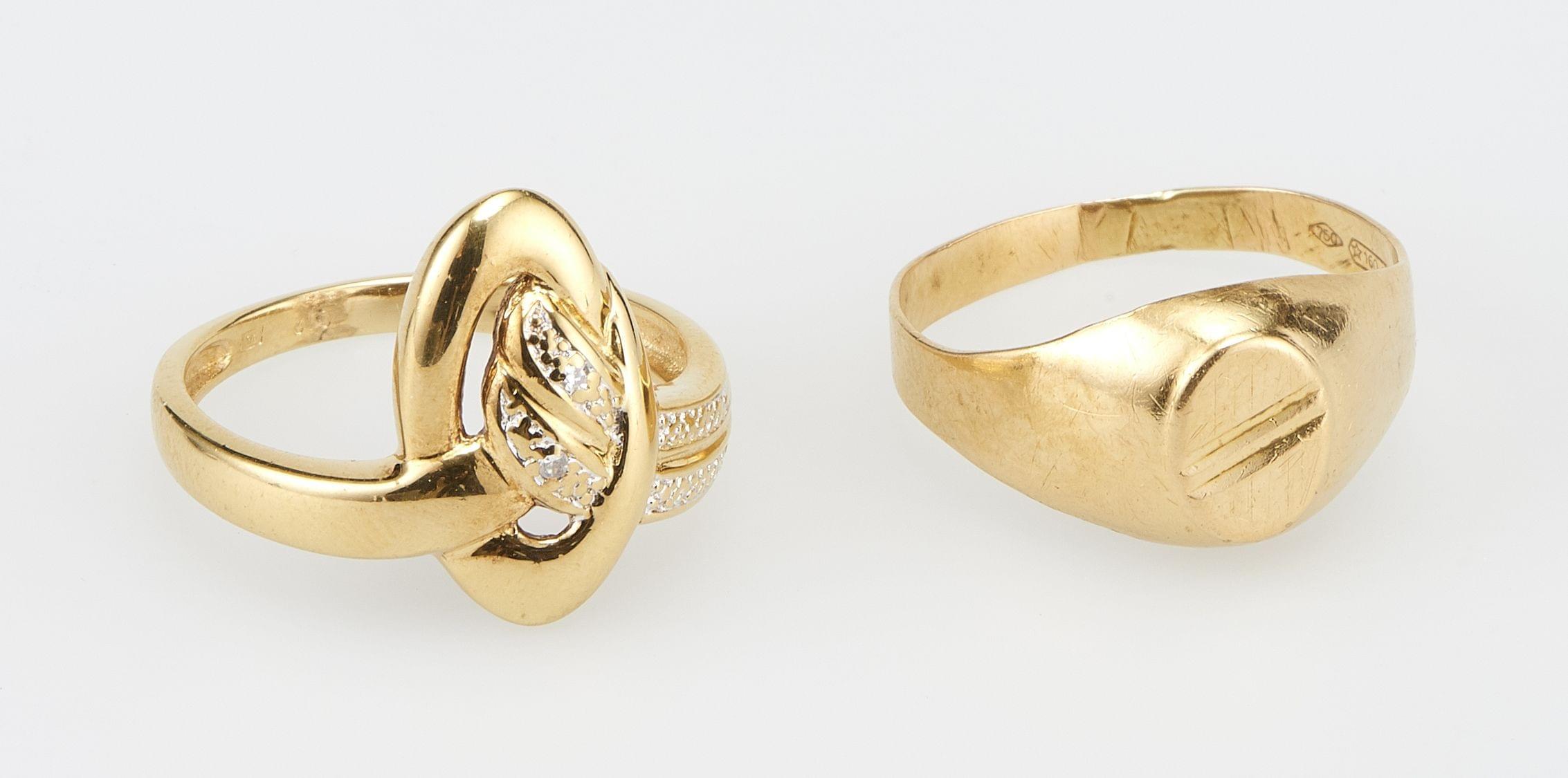 3276. Lot de deux bagues dont une chevalière et l'autre sertie de diamants