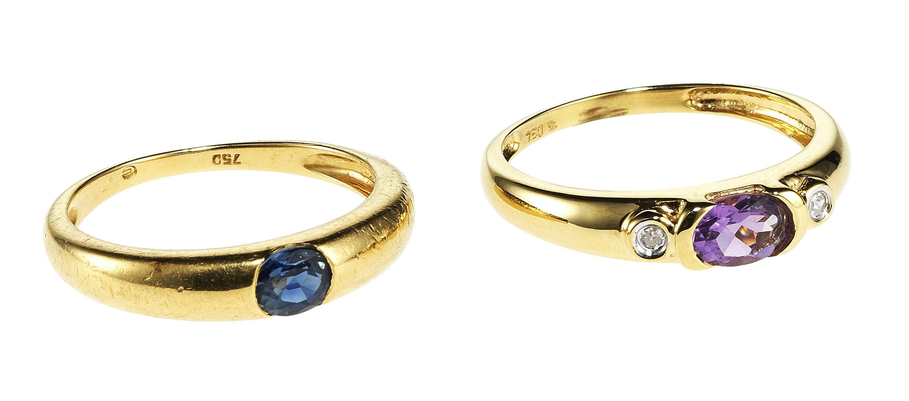 L'une blanche et l'autre grise (D env. 9 mm), or 750, doigt 51-1...