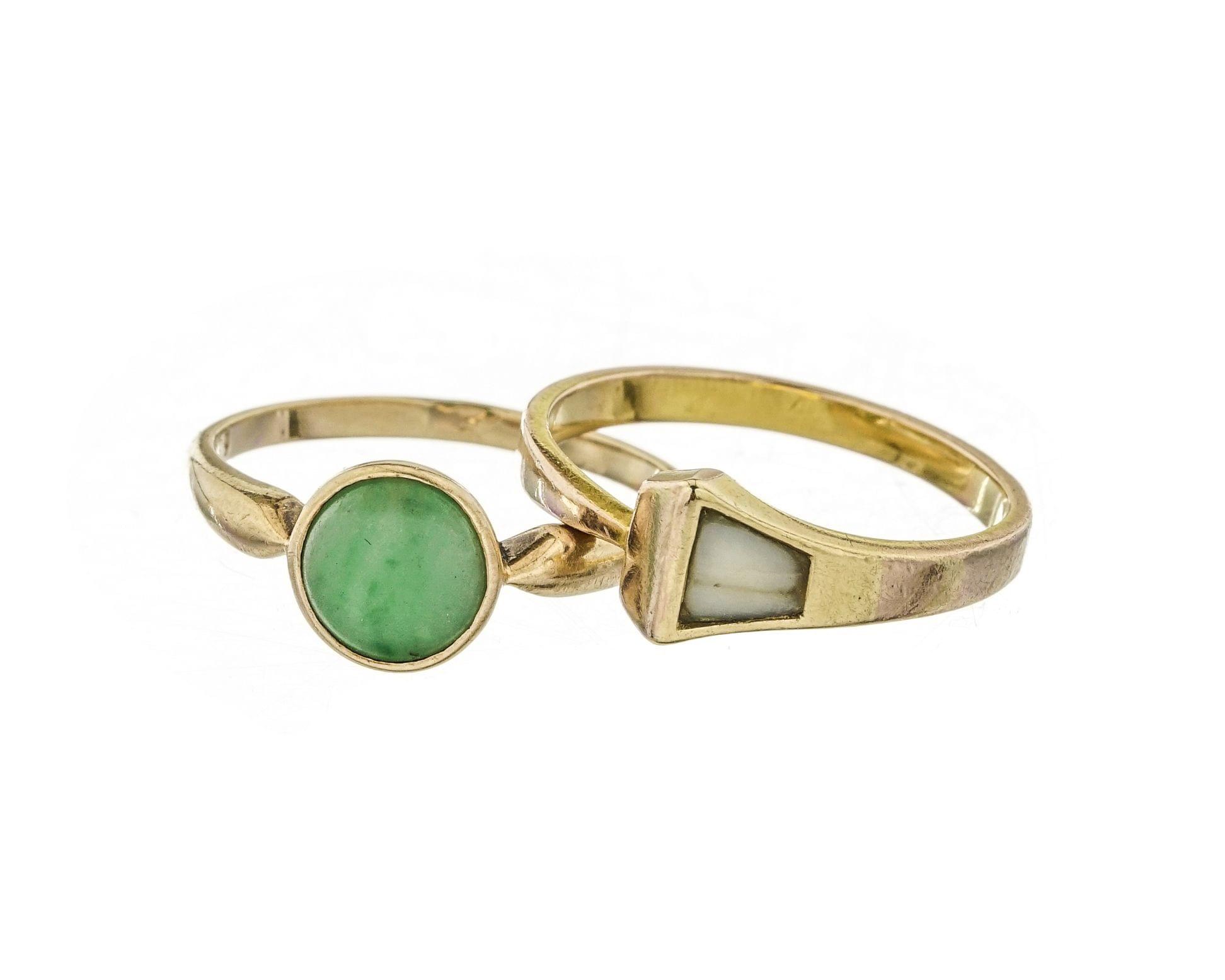 3078. Lot de deux bagues, l'une sertie d'un jade rond en cabochon
