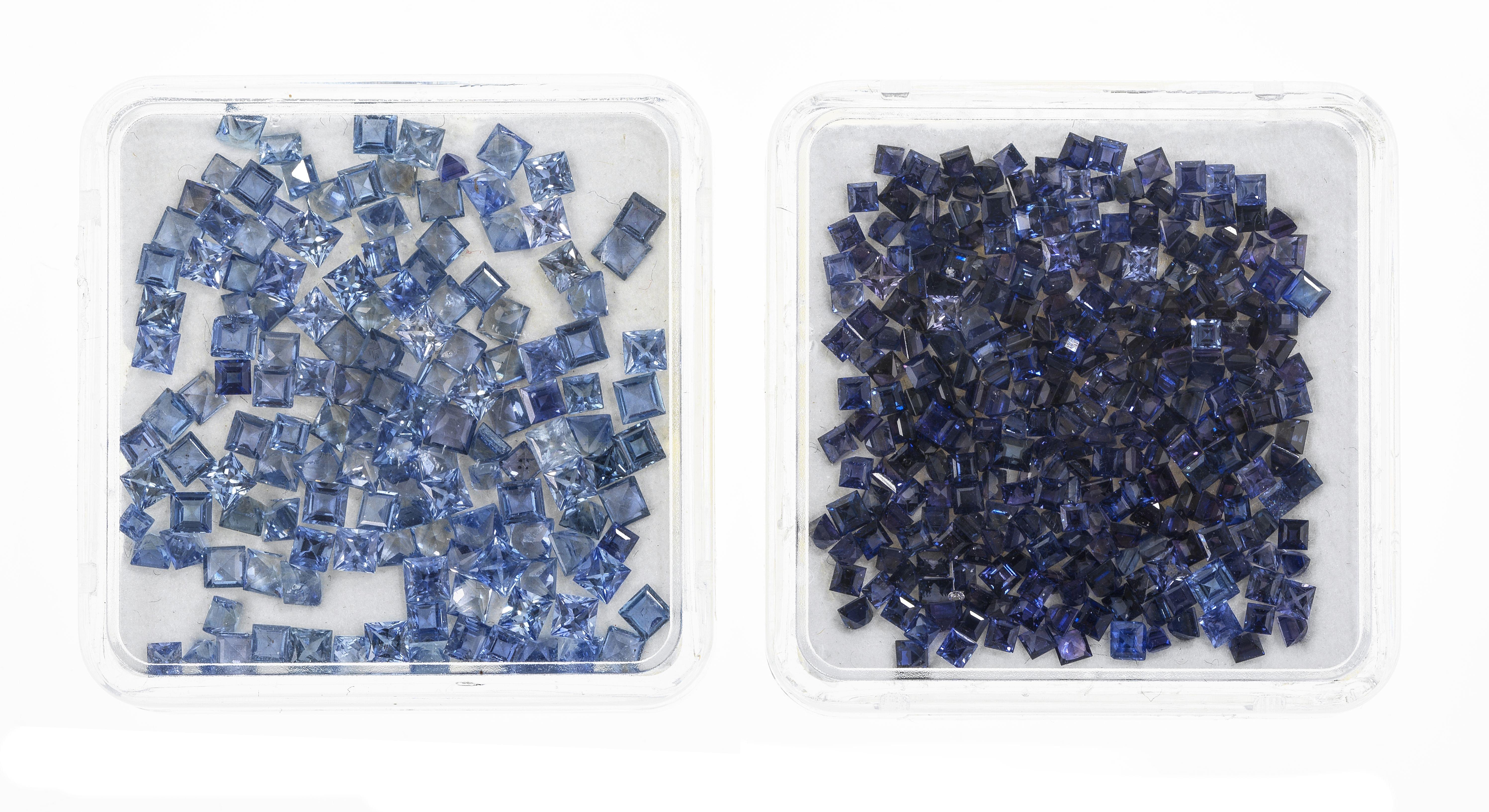 Lot de deux boîtes de saphirs calibrés sur papier