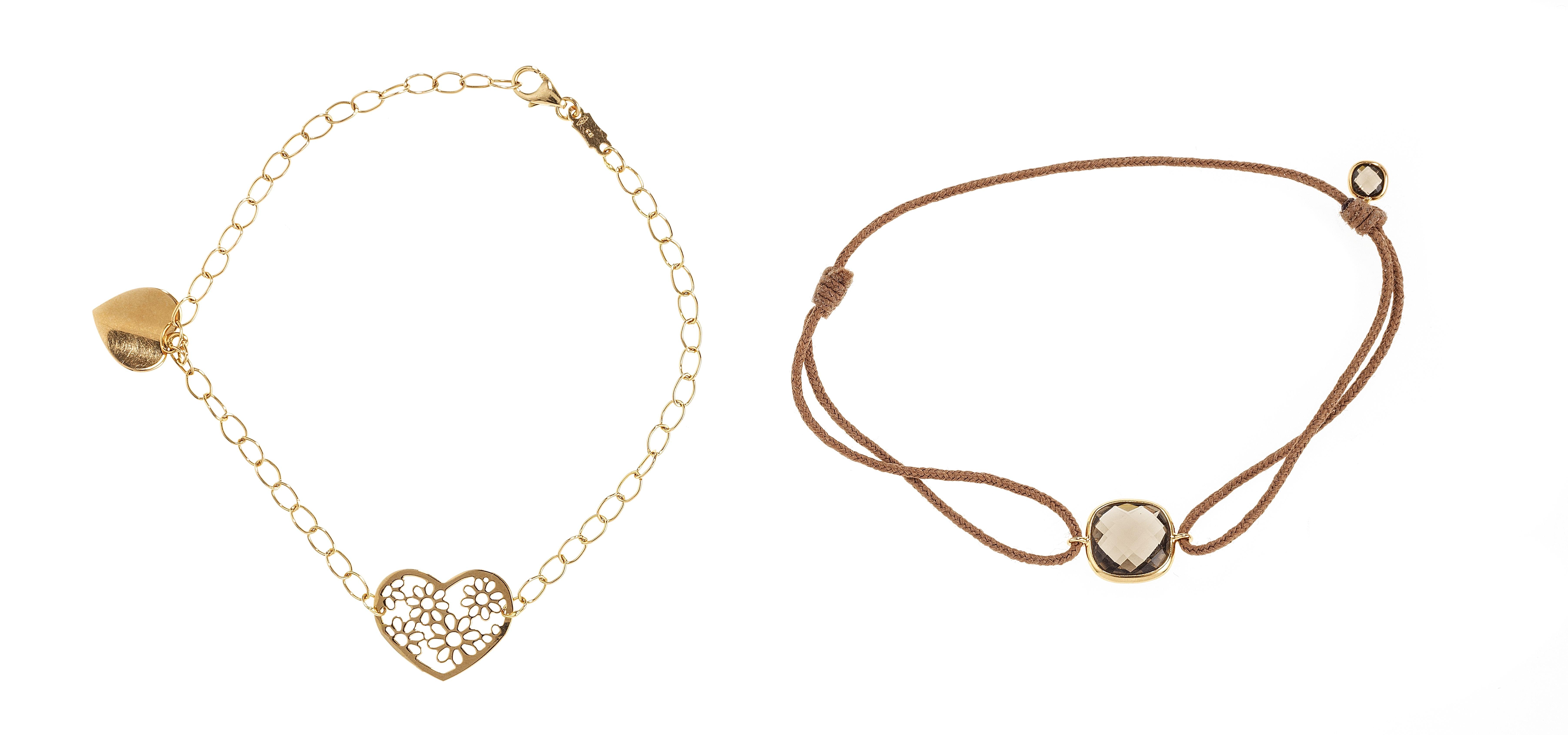 L'un à maille ovale retenant un cœur ajouré et signé Carl Bücherer, le second retenant un quartz fumé facetté sur cordon, or rose 750, L ajustable jusqu'à 18 cm