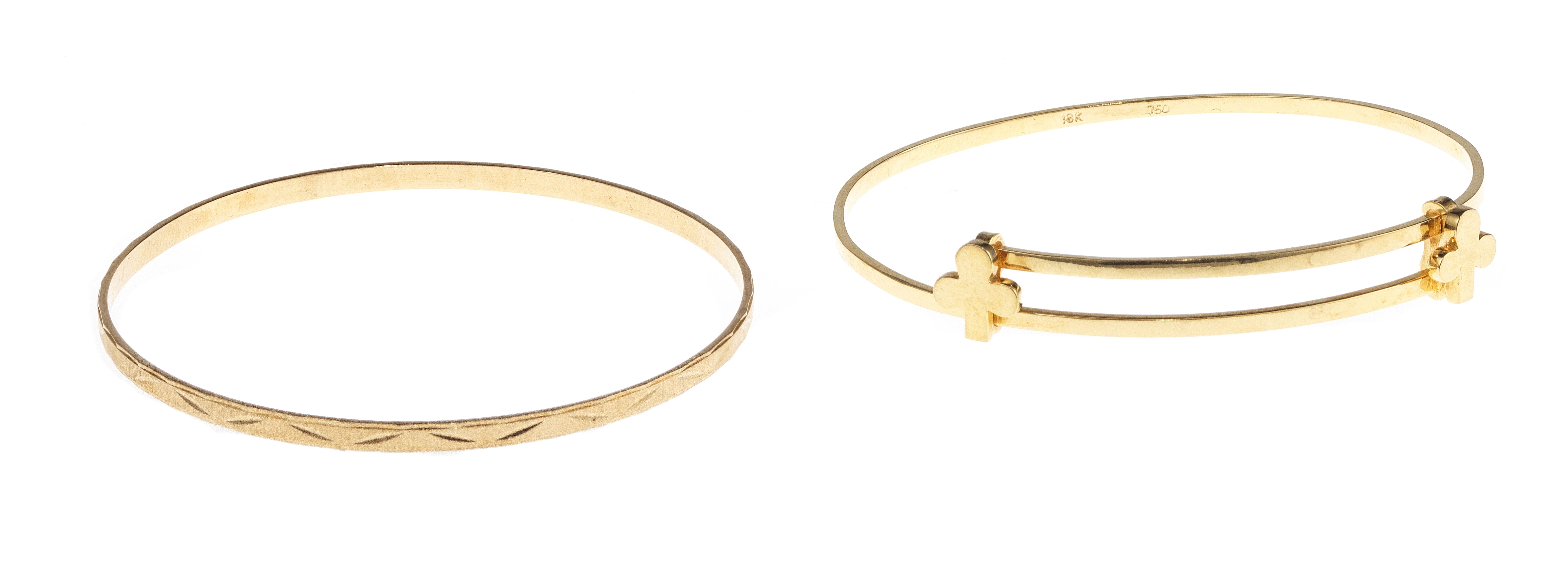 L'un orné de deux motifs de trèfles, l'autre ciselé, or 750, D 6 cm, 20 g