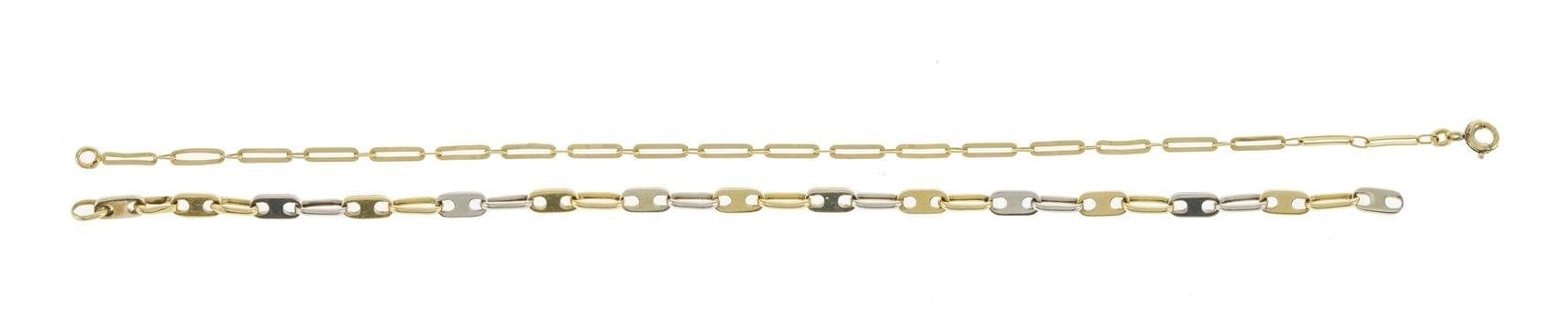 3056. Lot de deux bracelets, l'un à maille figaro et l'un à maille alternée deux ors