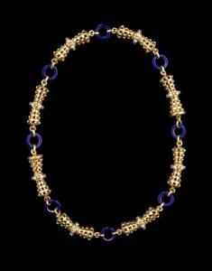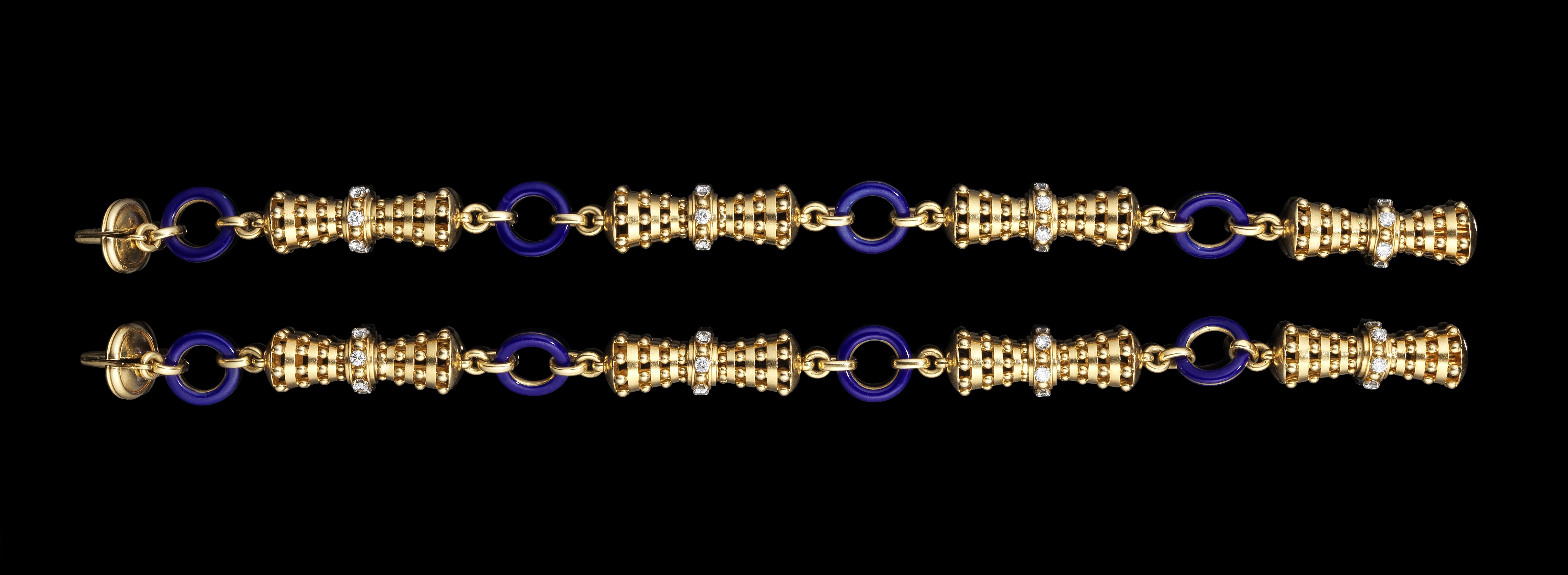 s émaillés bleusTravail italien, or 750, L 20 cm par bracelet, poids brut 84 g