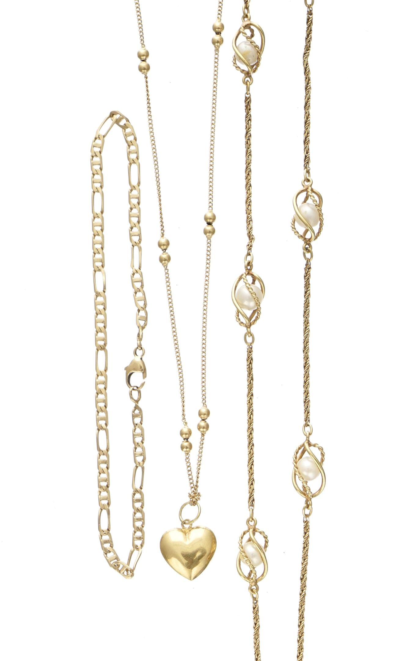 3378. Lot de deux chaînes, l'une sertie de perles, et d'un bracelet à maille figaro