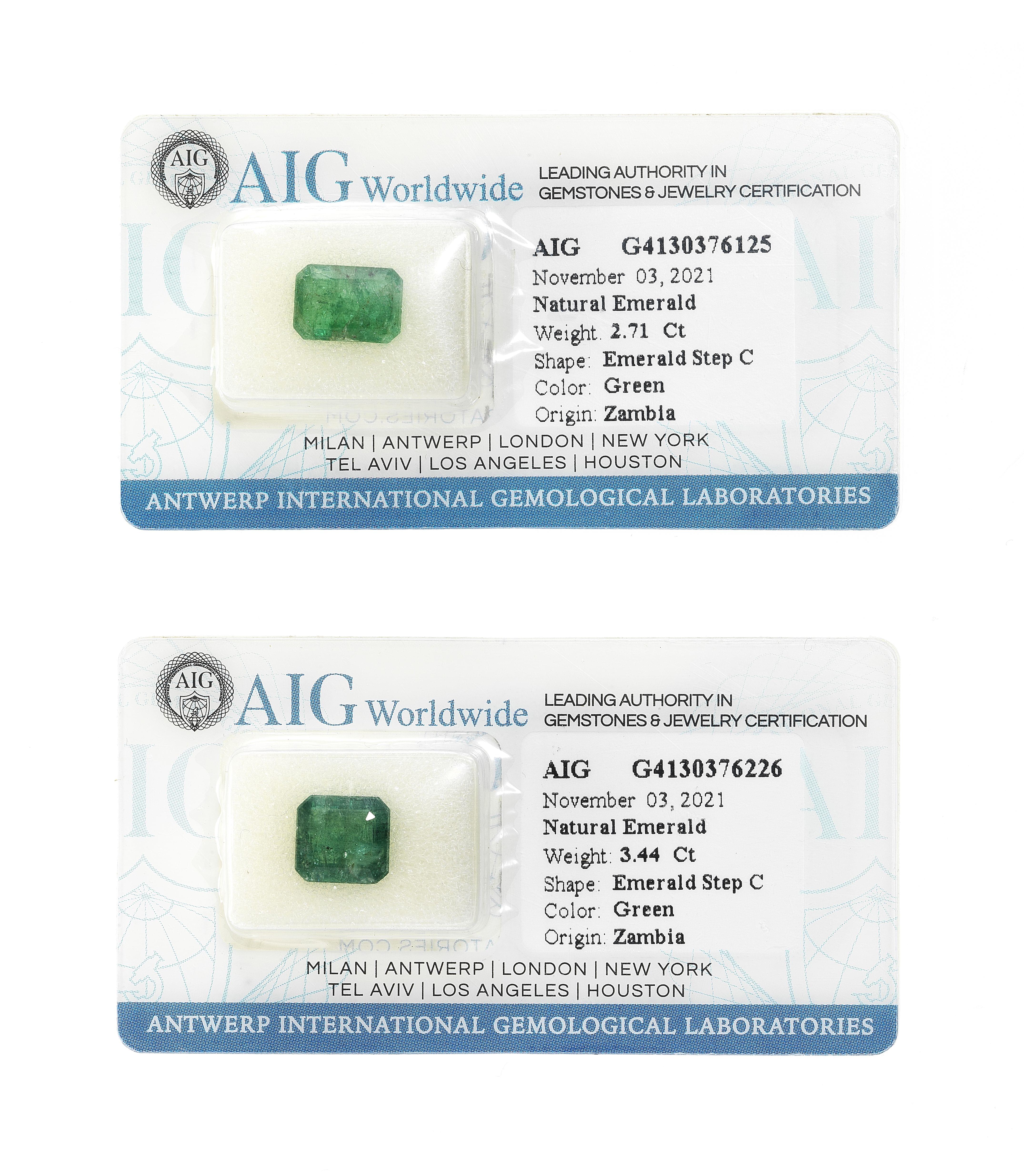 2,71 ct et 3,44 ct, accompagnées de certificats AIG. Pour les lots précédés d'un *, la TVA de 7,7% est due sur l'entier du prix d'adjudication.