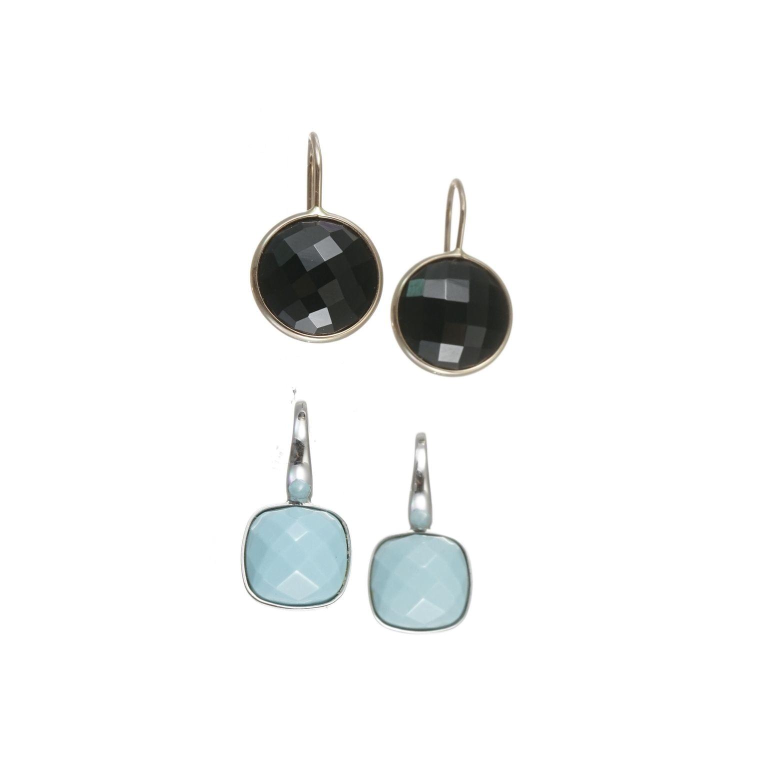 3204. Lot de deux paires de boucles d'oreilles, l'une sertie de turquoises facettées et l'autre sertie d'onyx facettés