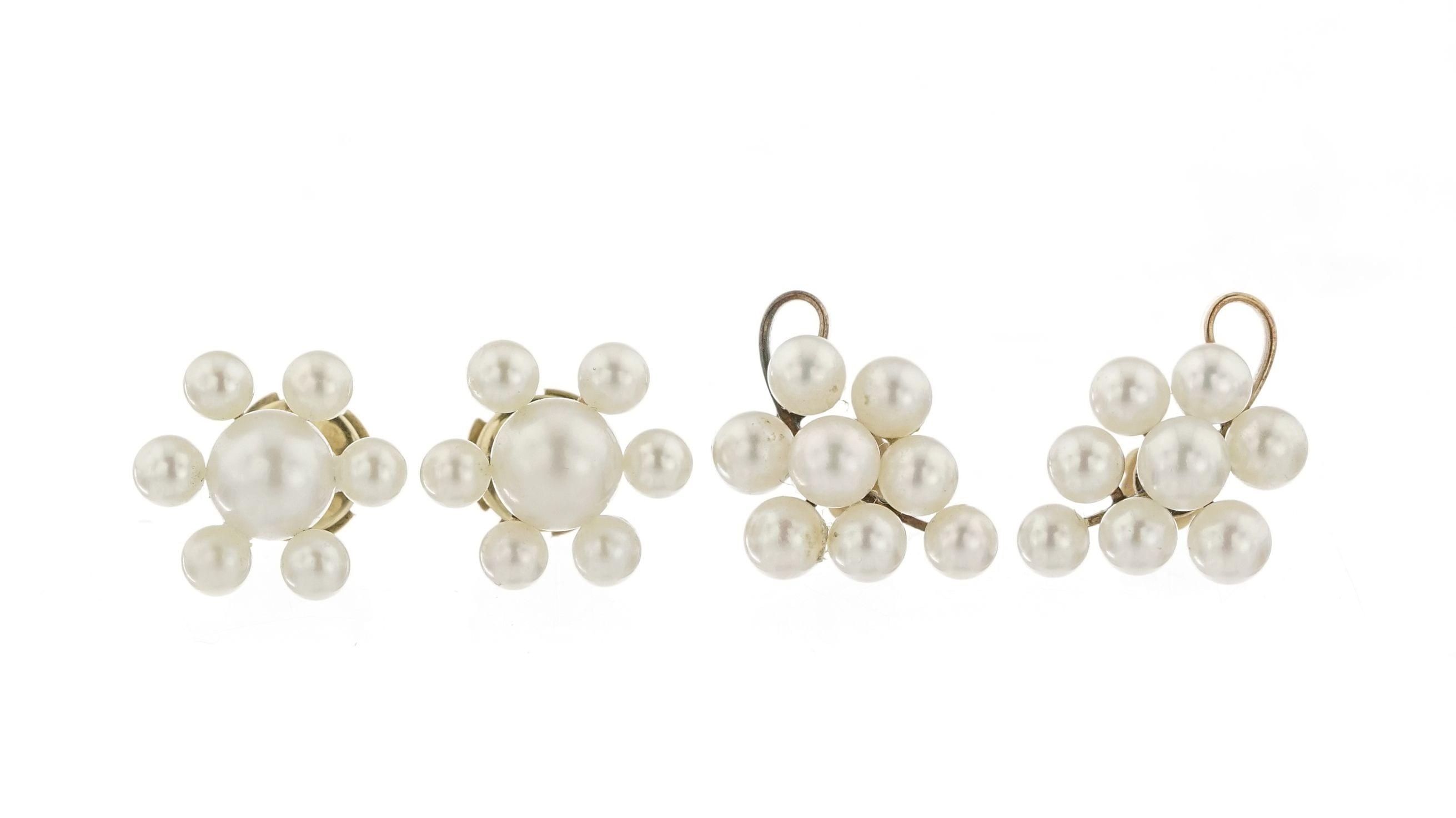 3084. Lot de deux paires de clous d'oreilles sertis de perles