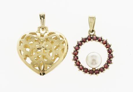 3105. Lot de deux pendentifs, l'un à motif de cœur et l'autre serti de grenats et d'une perle