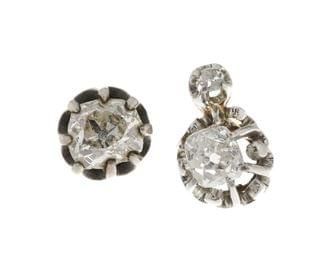 3124. Lot de deux puces d'oreilles anciennes dépareillées serties de diamants anciens (env. 0.25 ct et env. 0.4 ct)