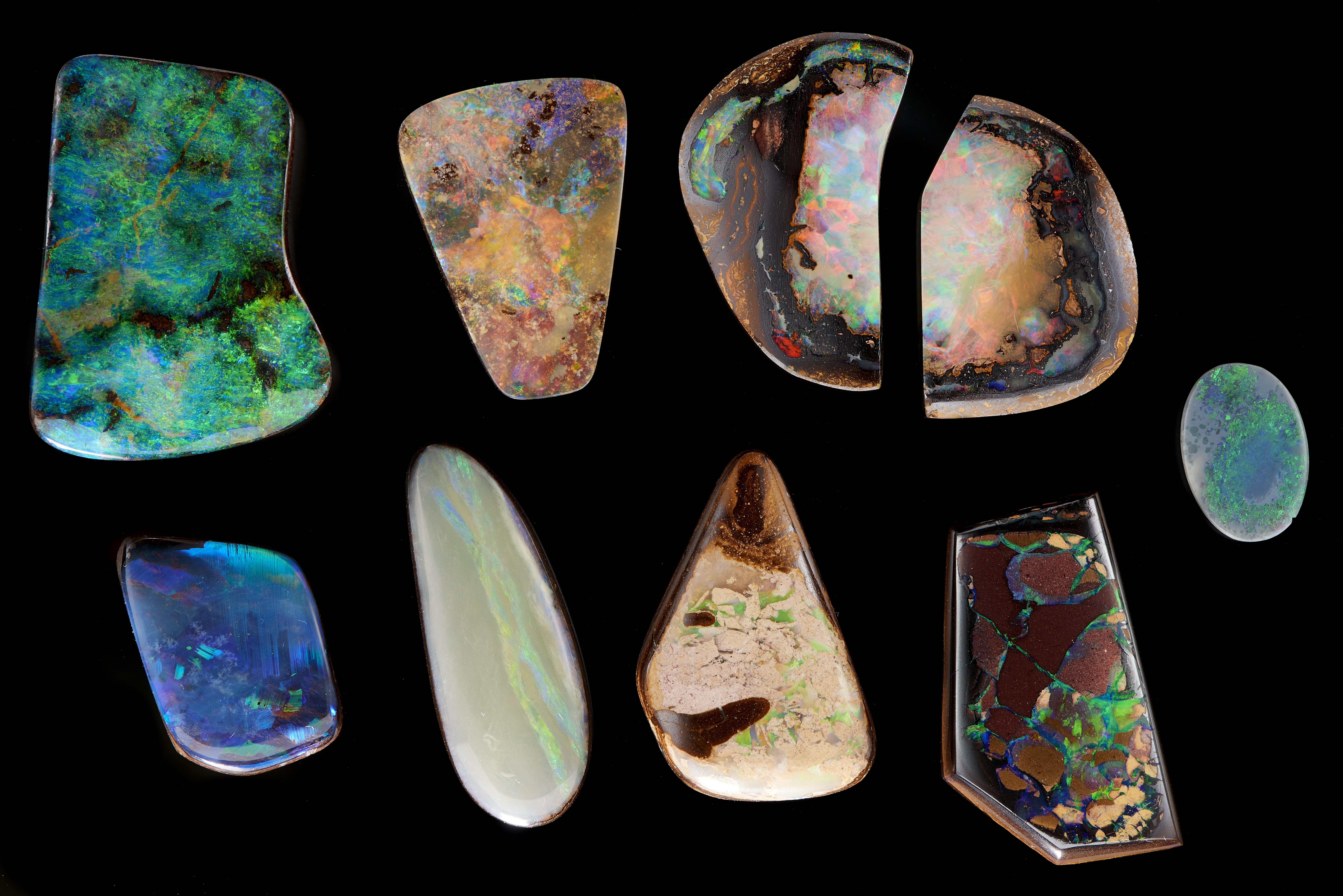 657. Lot de neuf opales polies sur papier (total env. 125,3 ct)