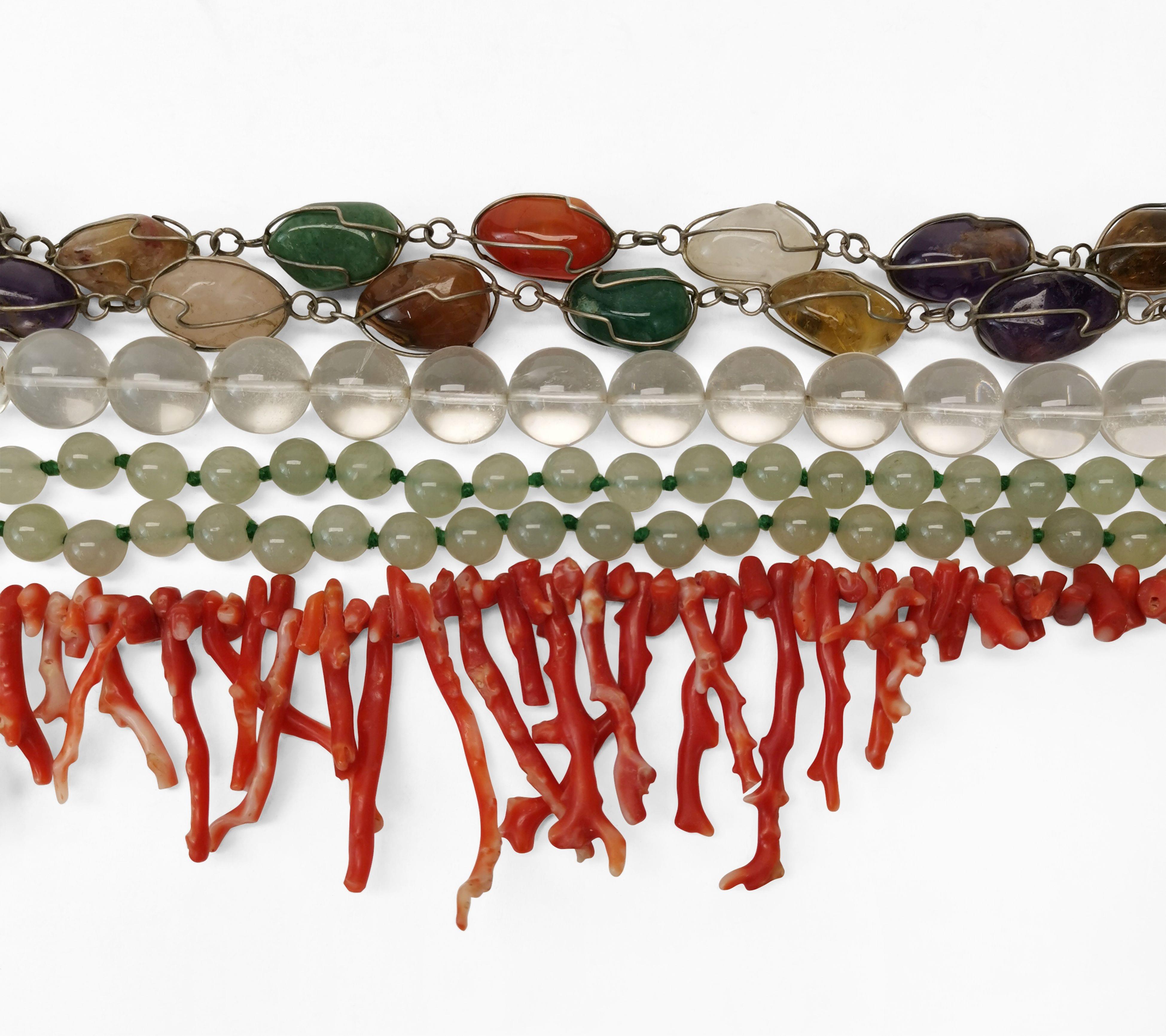 3003. Collier multi-rangs de perles de corail centré d'un médaillon pa...