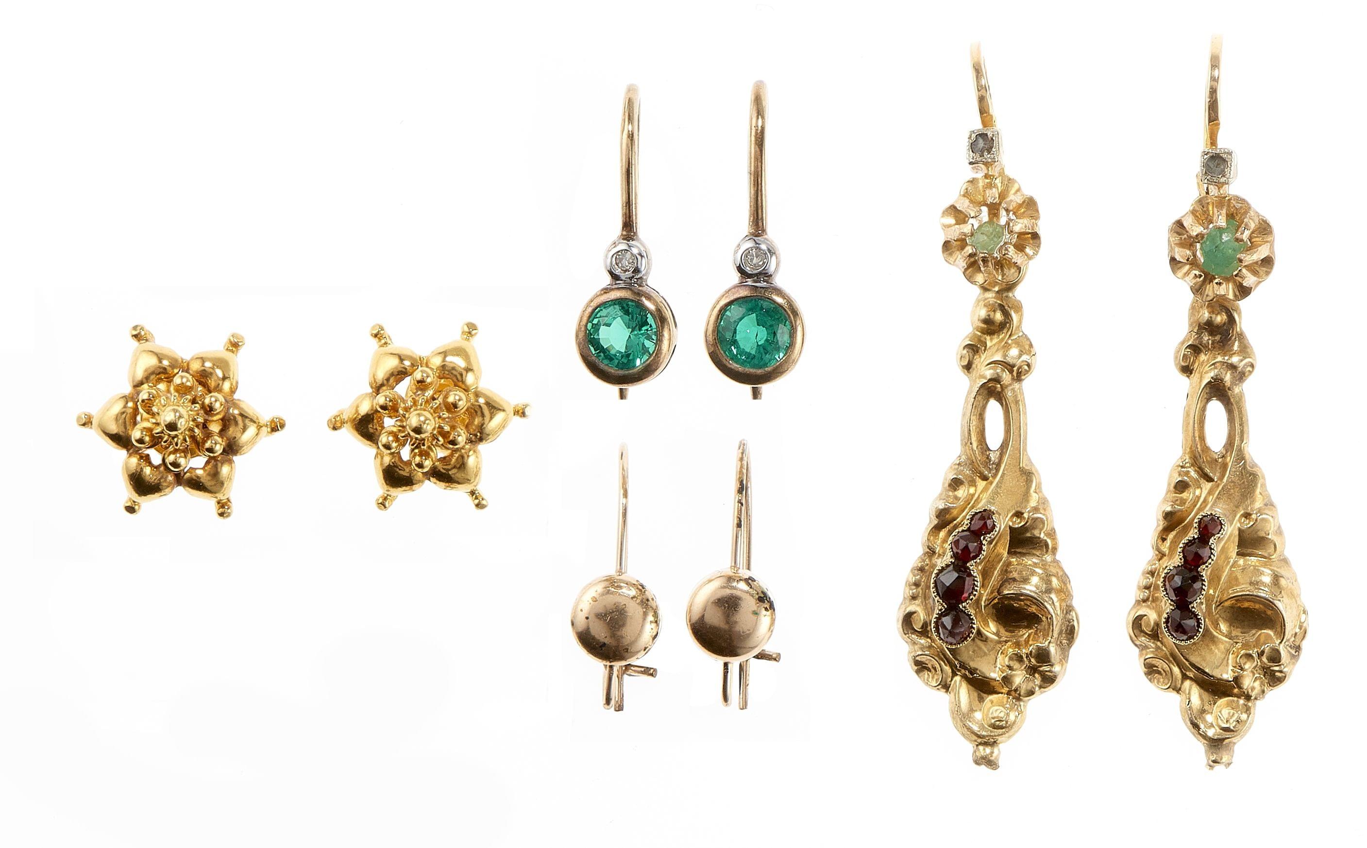 Or 750, 585 et bas titre, H entre 1 et 4 cm, poids brut 6 g