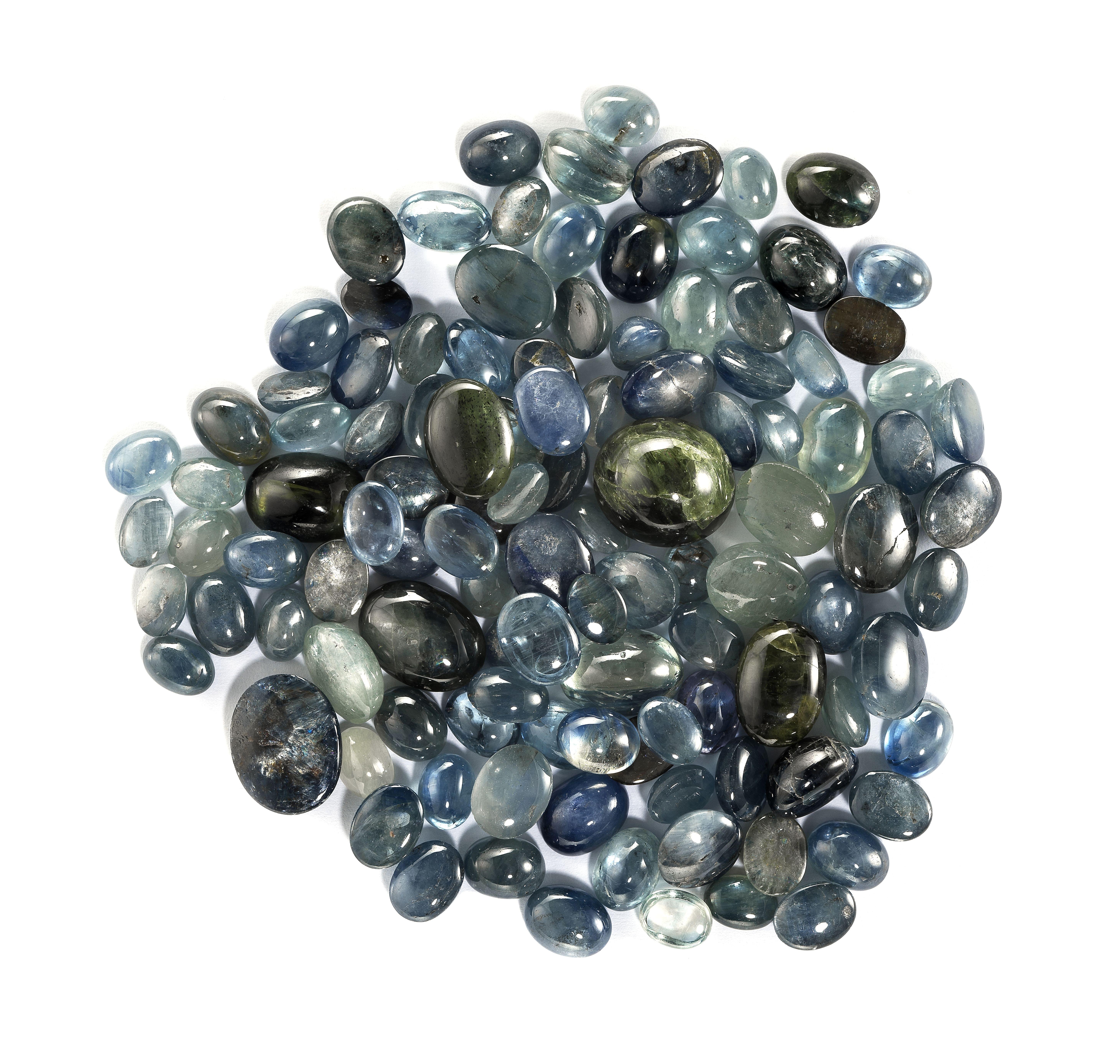 3497. *Lot de saphirs verts-bleus du Siam taille cabochon sur papier