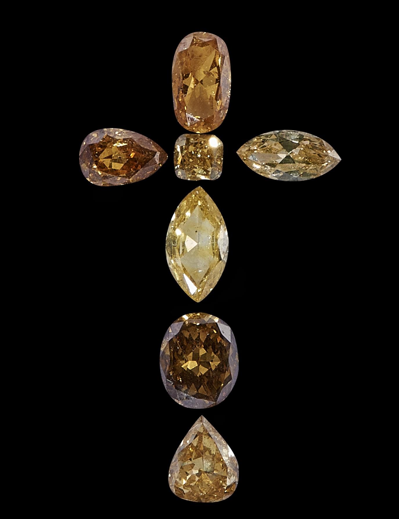 Lot de sept diamants fancy yellow sur papier taille brillant, ovale, marquise et poire (total 1,53 ct)