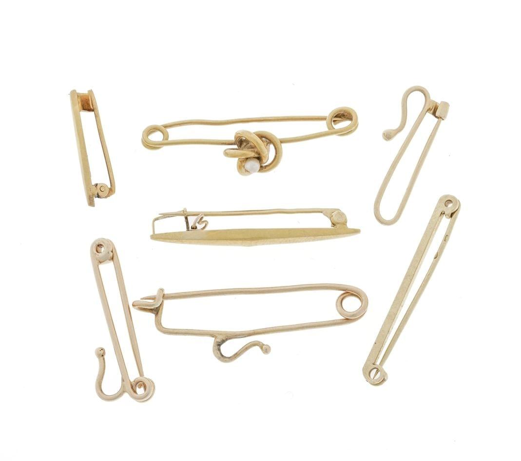 3111. Lot de sept épingles anciennes, l'une sertie d'une perle