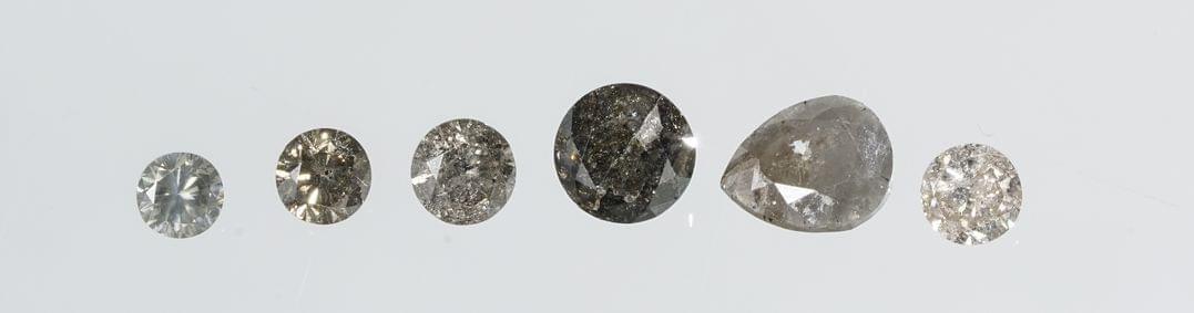 3075. Lot de six diamants sur papier présentant diverses teintes de brun