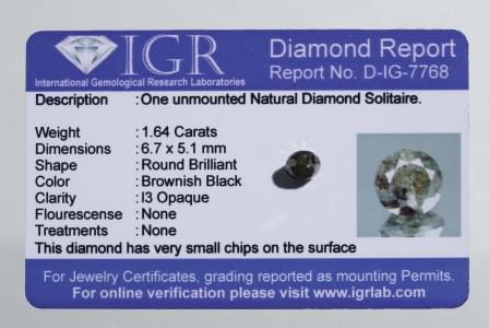 L'un taille poire de 1.73 ct et cinq taille brillant de 0.30 ct, 0.40 ct, 0.41 ct, 0.57 ct et 1. 64 ct, avec leur carte de rapport IGR