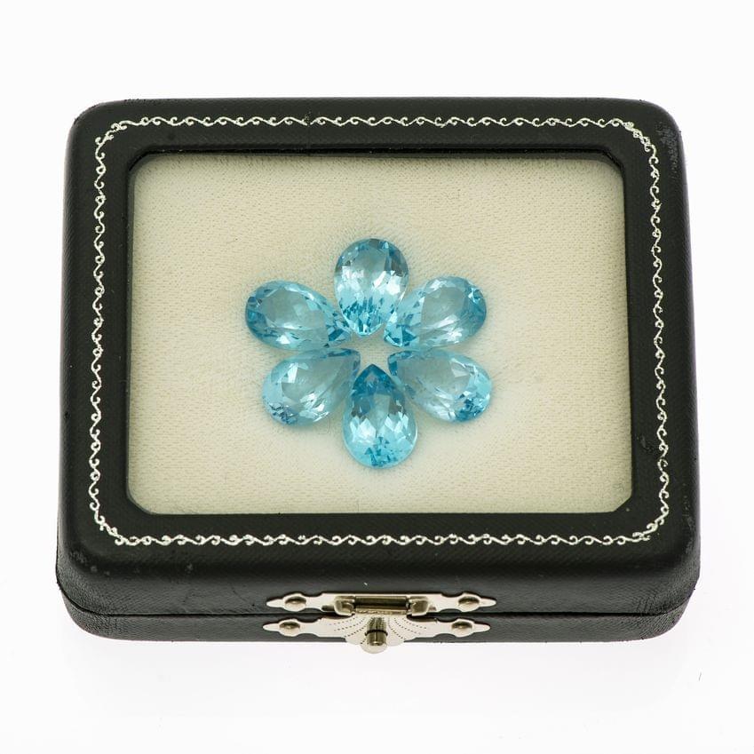 Lot de six topazes taille poire sur papier (env 7.5 ct chacune)