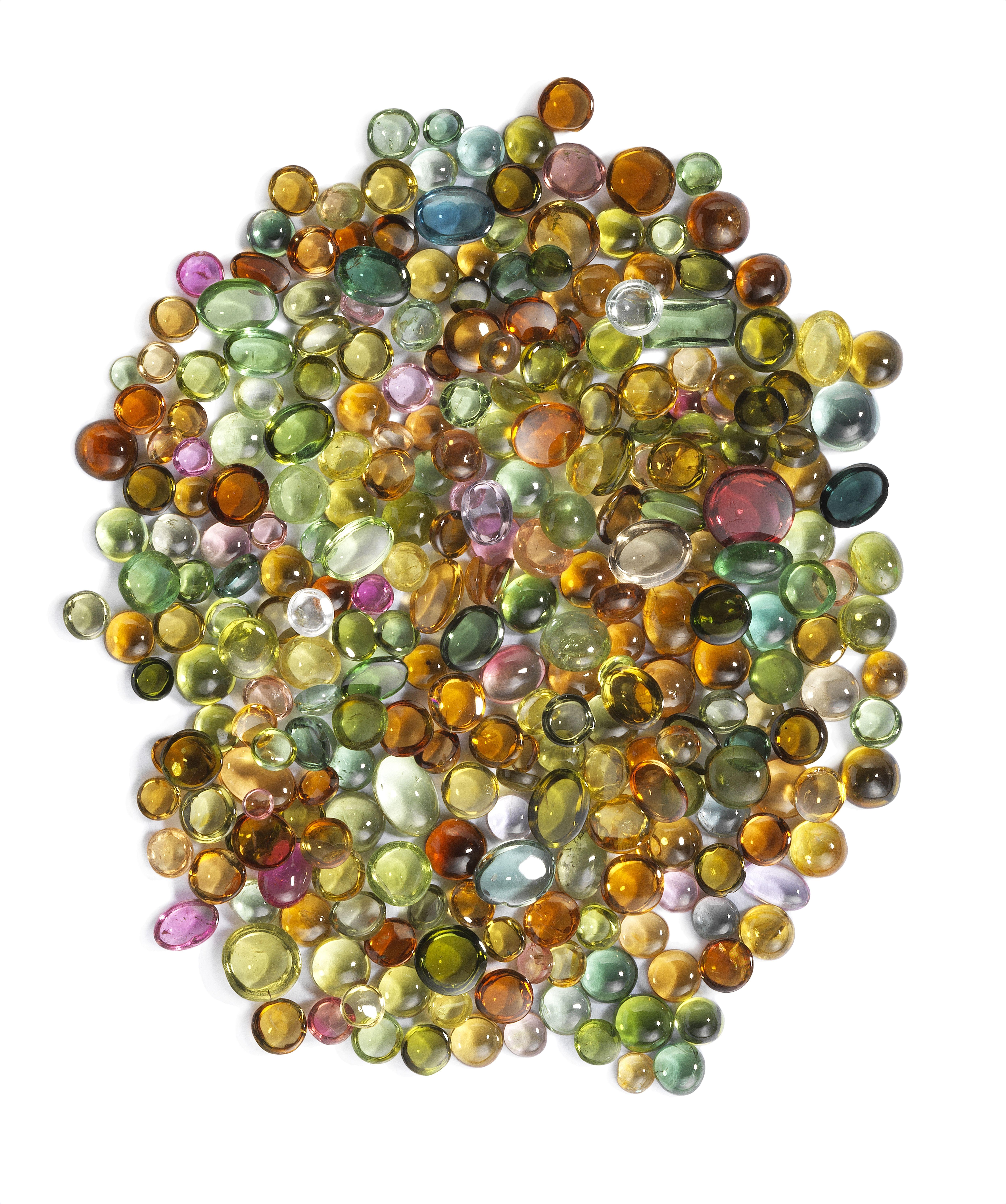 3555. *Lot de tourmalines multi-colores taille cabochon sur papier
