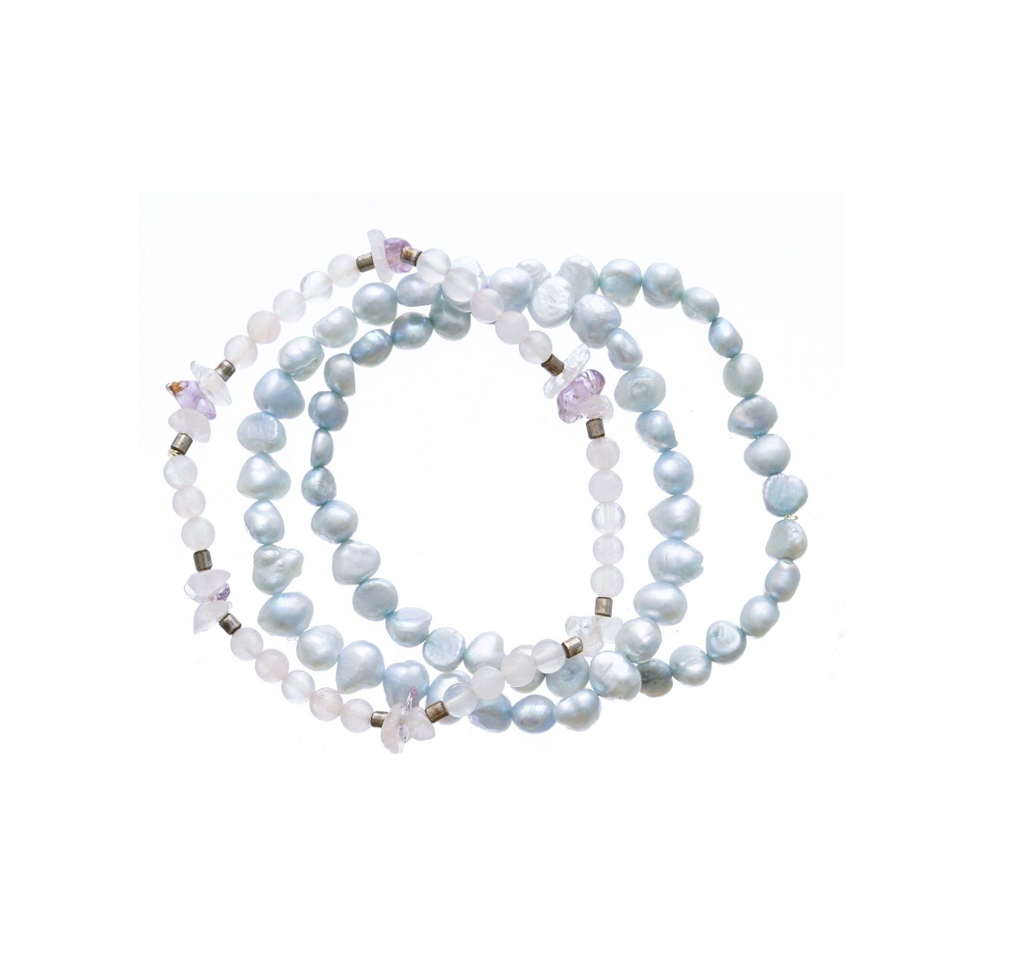 L'un composé de perles de quartz rose et d'améthystes, les deux autres composés de perles d'eau douce