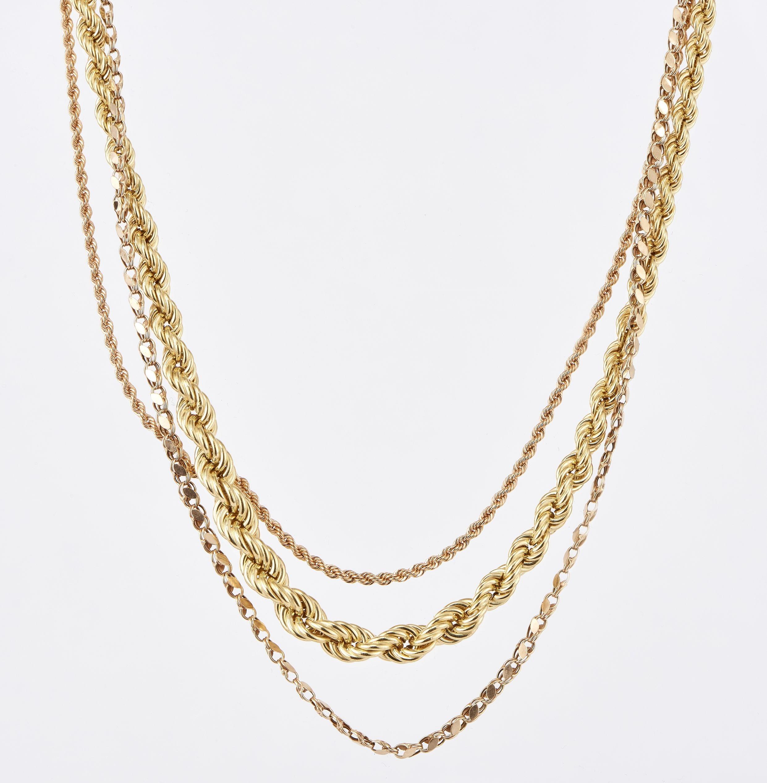 3362. Lot de trois colliers à maille torsadée et fantaisie