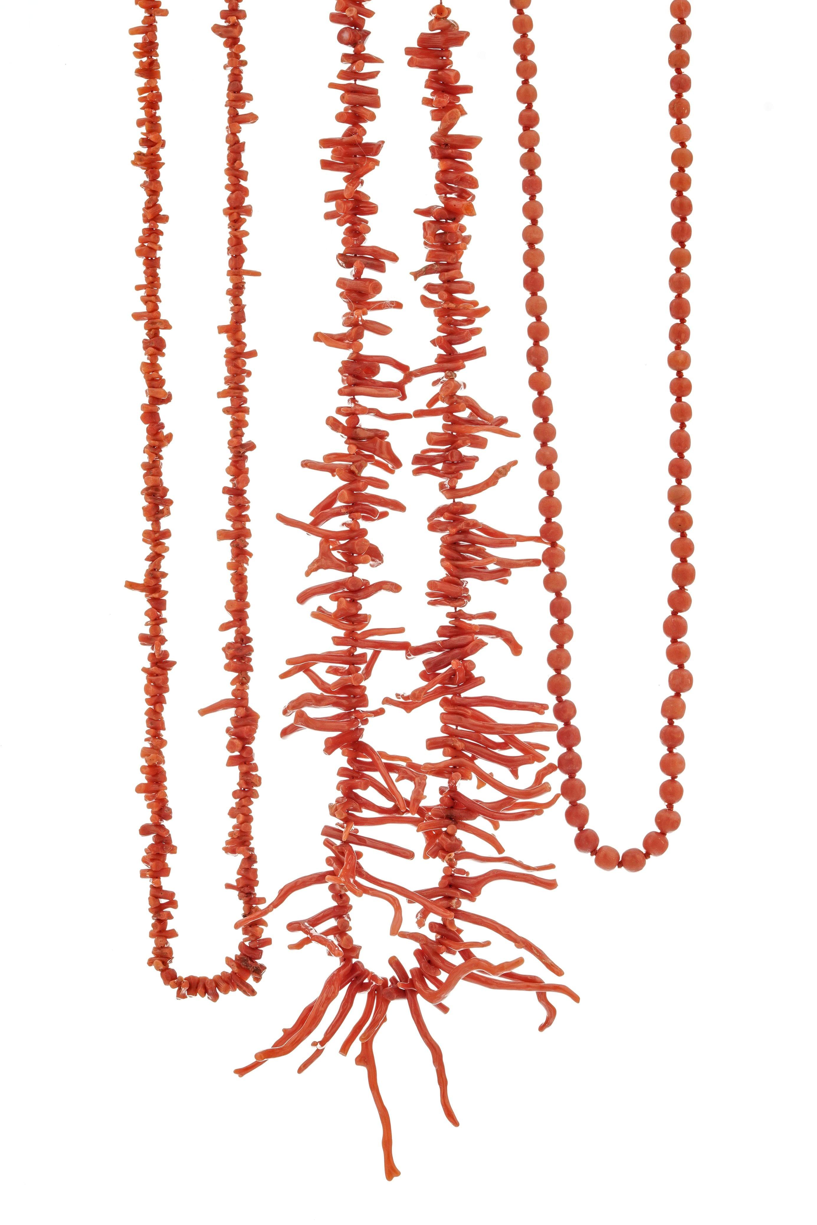 137. Trois branches de coraux rouges sur socle