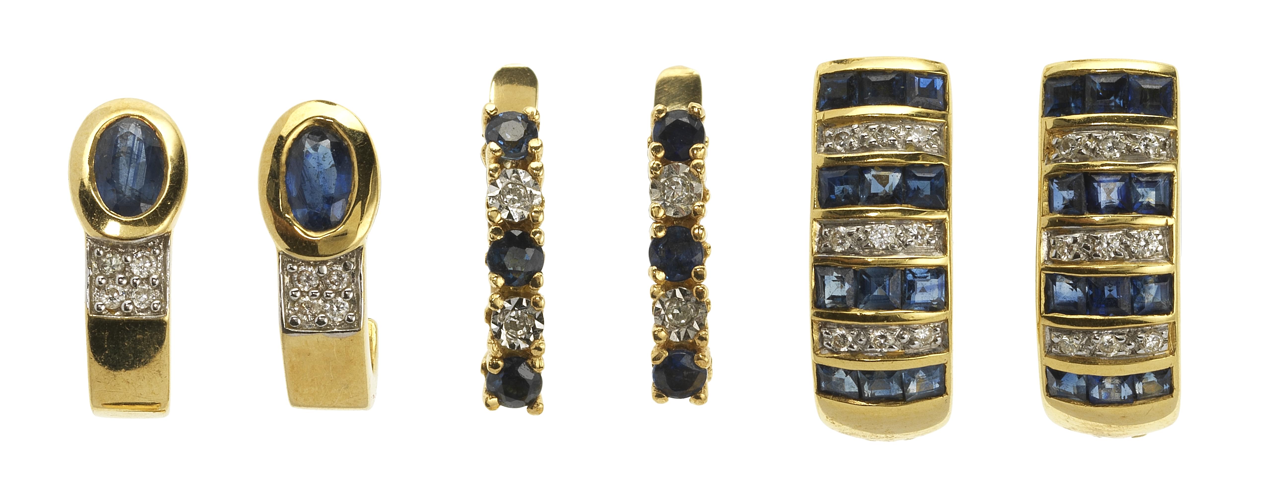 Serties chacune de saphirs et de diamants, or 750, H entre 1 et 1,5 cm, 9 g