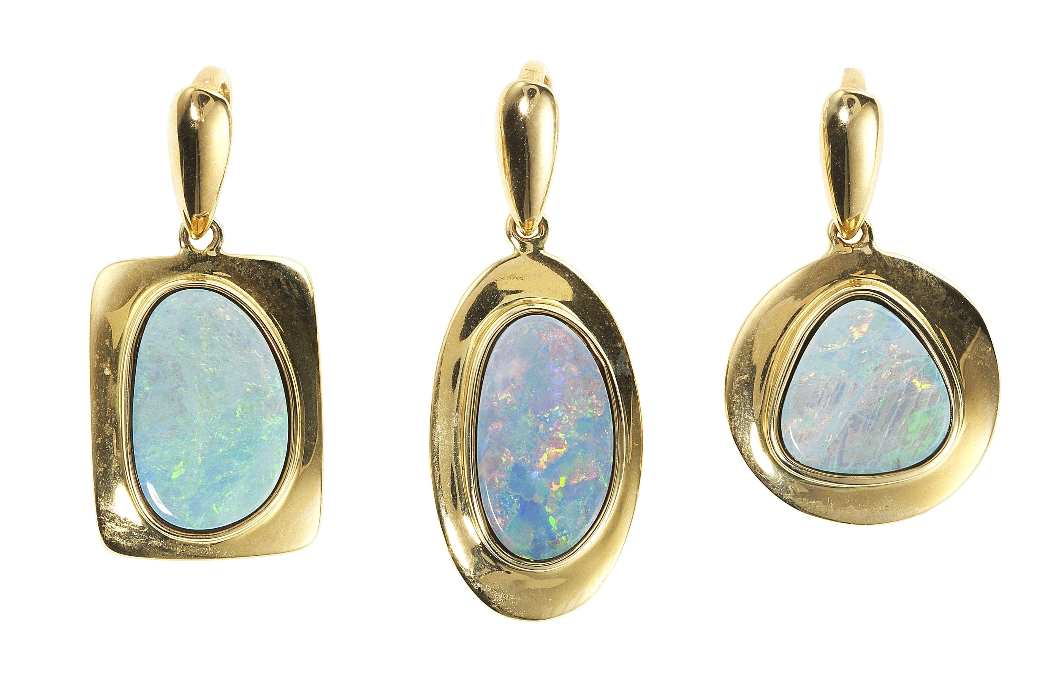 3267. Lot de trois pendentifs sertis d'opales à fond blanc