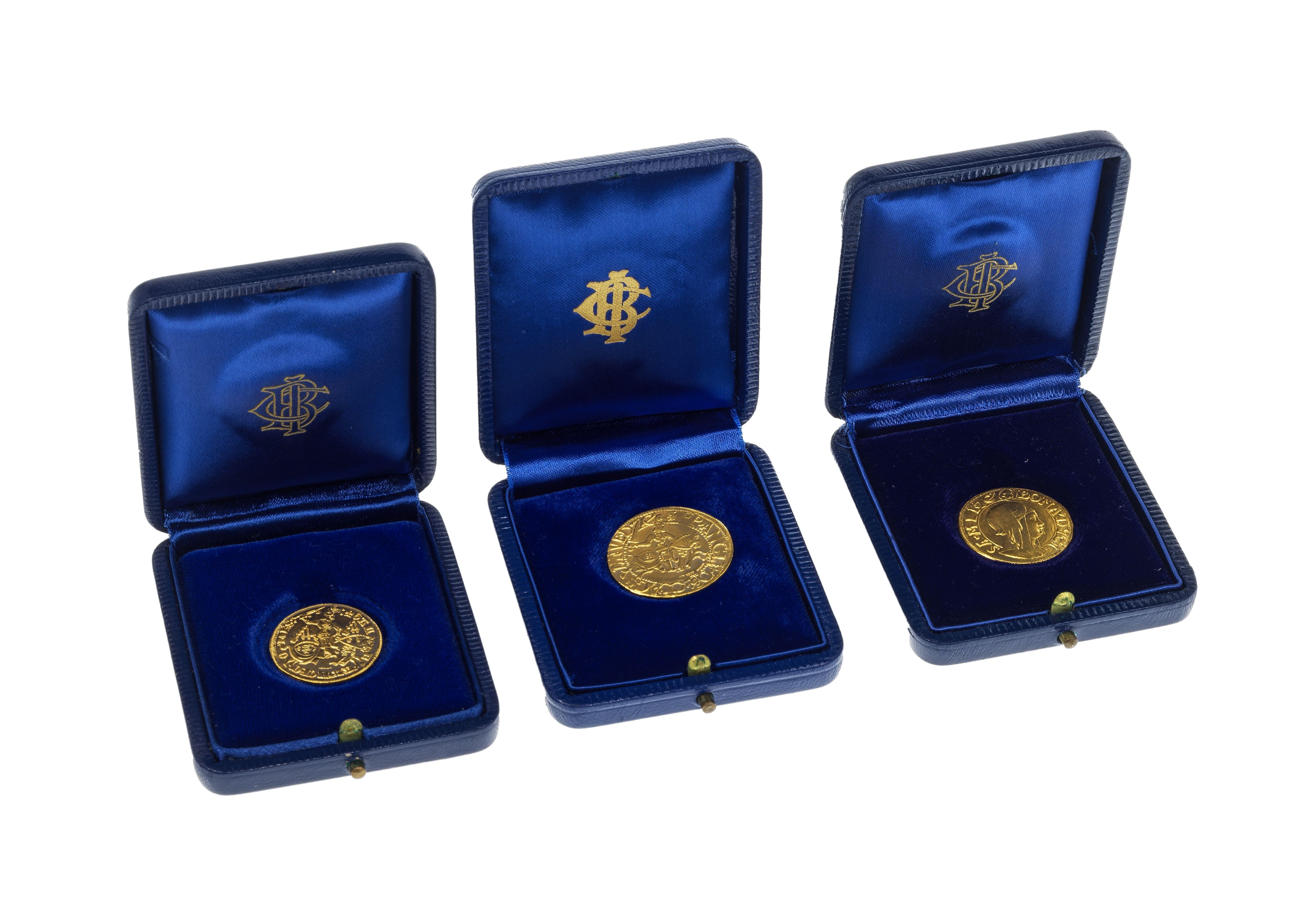 267. Ensemble de trois anneaux sertis de saphirs calibrés, deux d'ent...