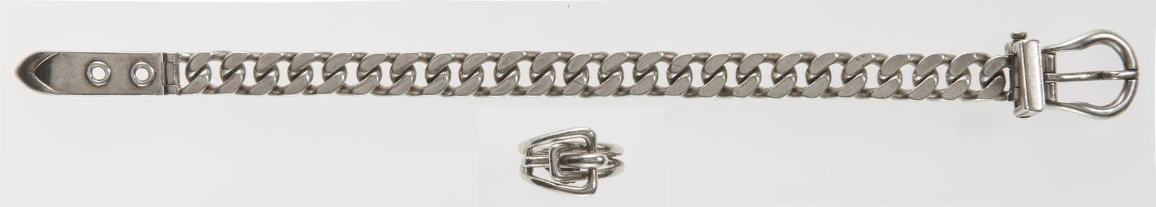 3258. Lot d'un bracelet et d'une bague ceinture; portent la signature Hermès