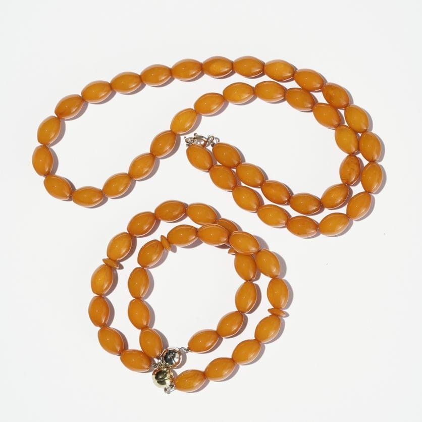 50. Collier à médaillons sertis de jaspe sanguin et d'agate en alter...
