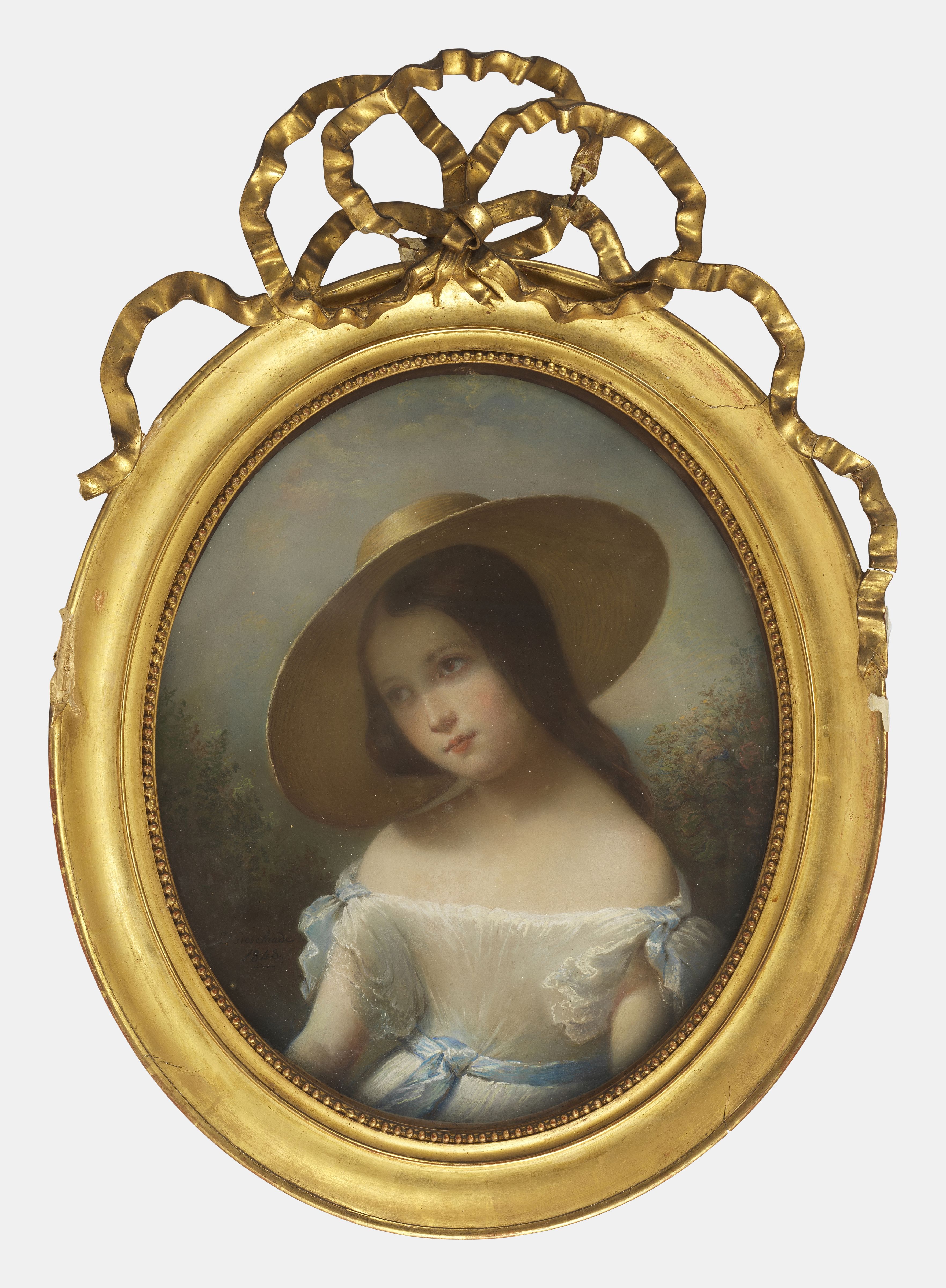 Jeune femme au chapeau, pastel sur papier, signé et daté, 1848, 60x50cm