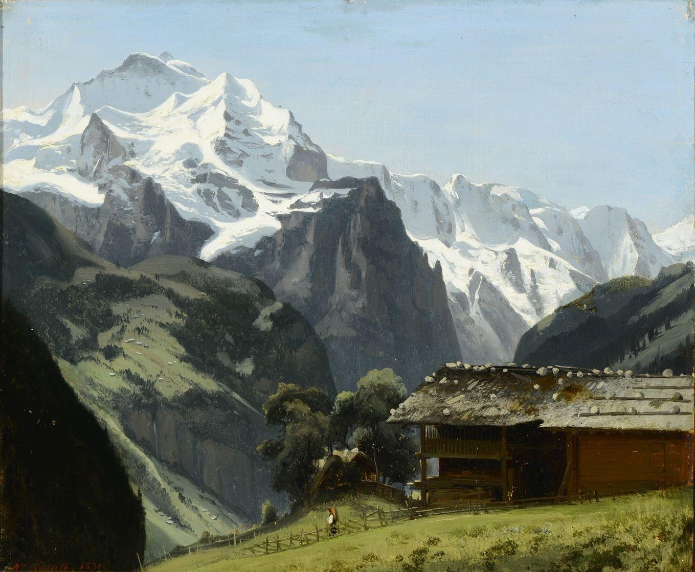 Le glacier du Jungfrau, huile sur toile, signée et datée 1830, 38x46 cm