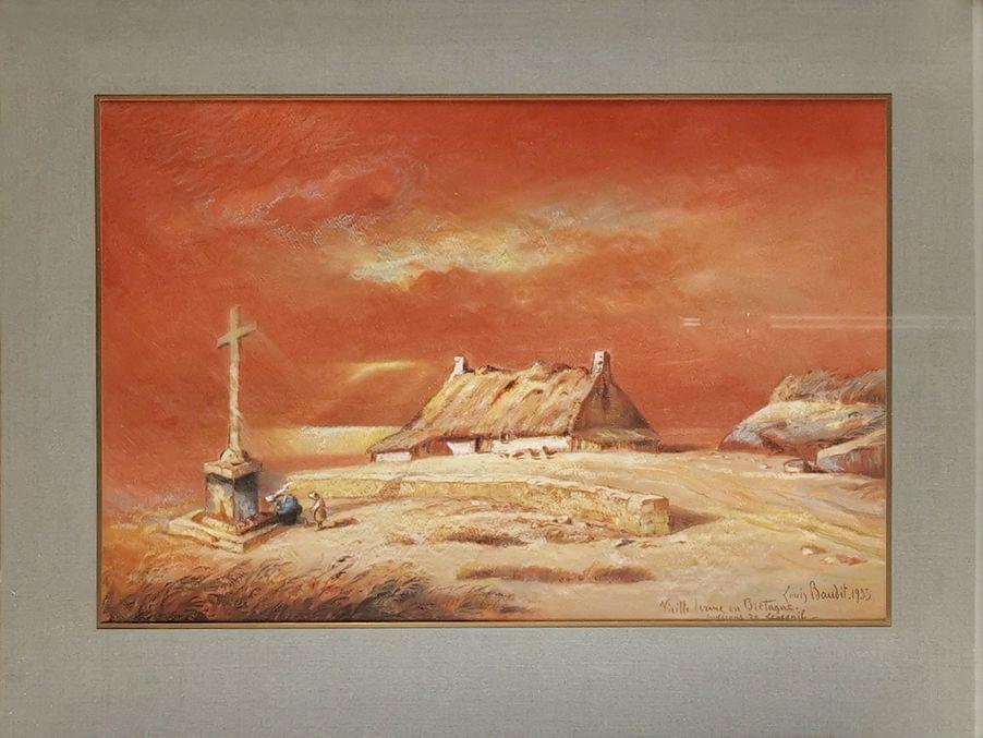 Vieille ferme en Bretagne, pastel et gouache sur papier, signé et daté 1935, 30x46 cm