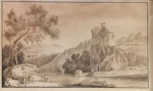 Paire de dessins d'après nature représentant des vues sur le château de Pierre Scize (Lyon), c. 1780, crayon, encre et lavis sur papier, 20x34,5 cm