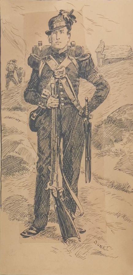 Soldat, encre sur papier, 30x16 cm